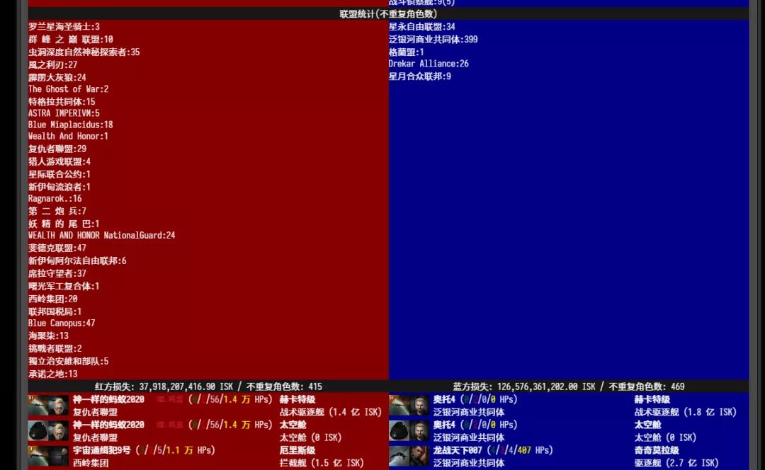 这可能是今年唯一一次有超过300人的海盗进攻Pibc联盟。在此次战斗中,海盗联盟史无前例地组出银鹰队这种对人口基数要求极高的舰队。