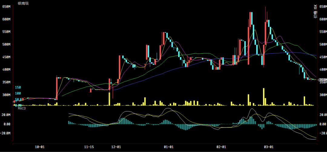 3月29日,大型联盟会战常见制式舰船“银鹰”价格跌至3.5E,比2月26日出现市场空缺时的价格整整低了3E!