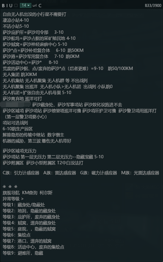 最关键的是,EVE这款游戏需要记录的内容实在太多:什么异常对应出什么远征;特殊死亡有什么需要注意的地方;哪些死亡多少吨位以上的舰船进不去;哪些任务空间存在特殊奖励等等。