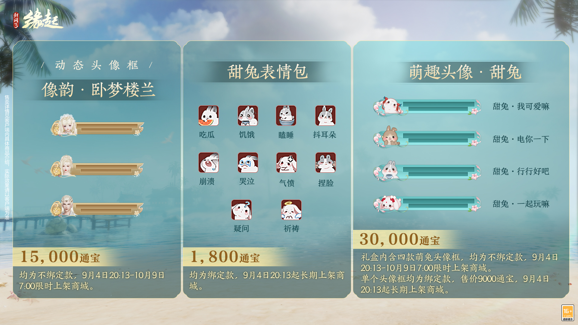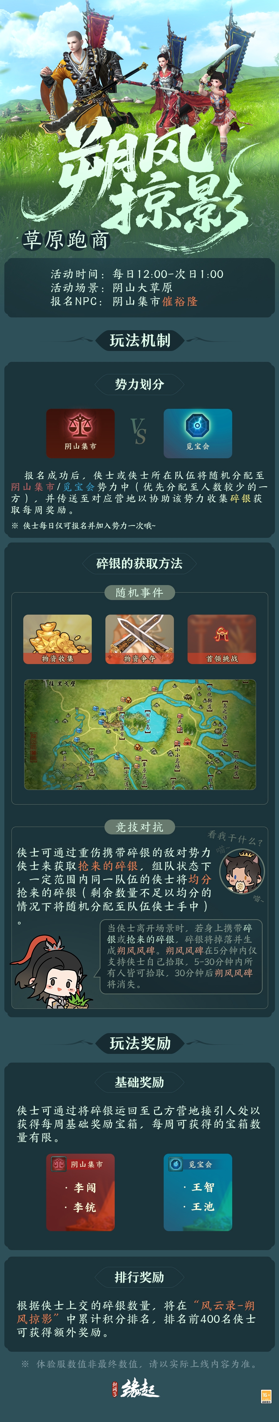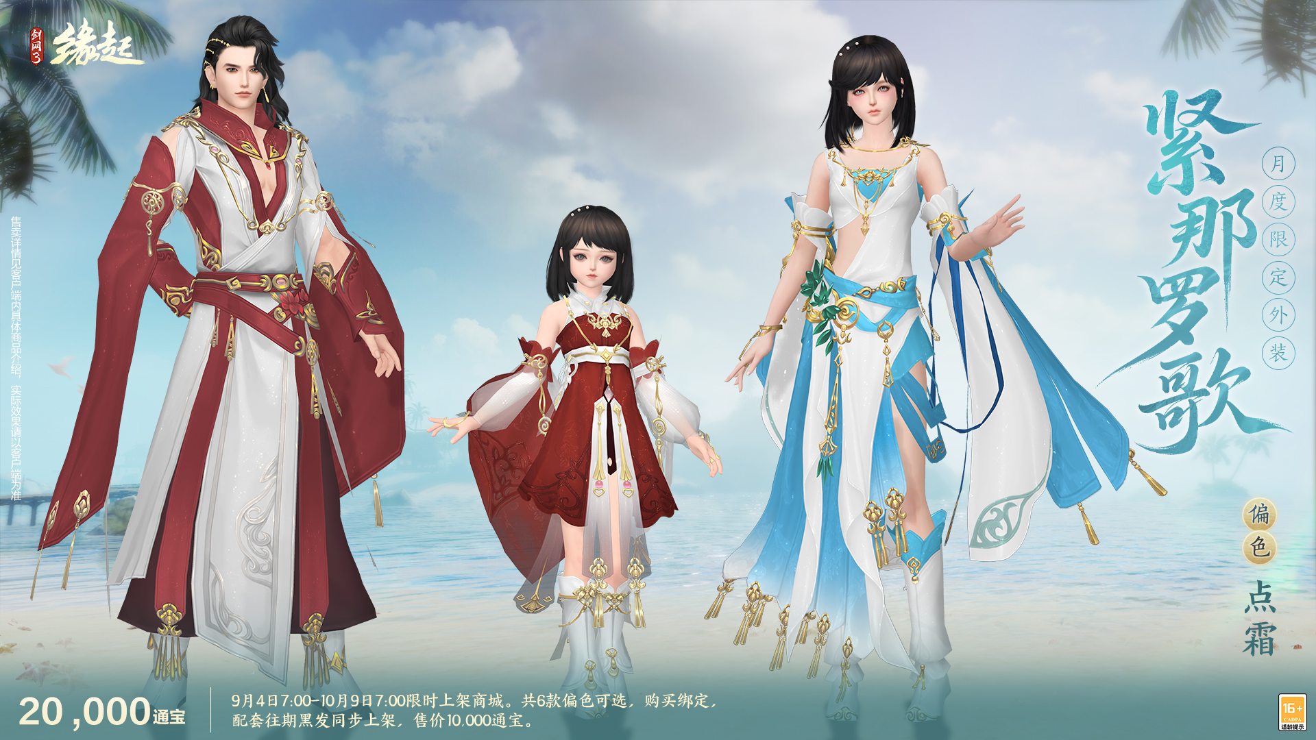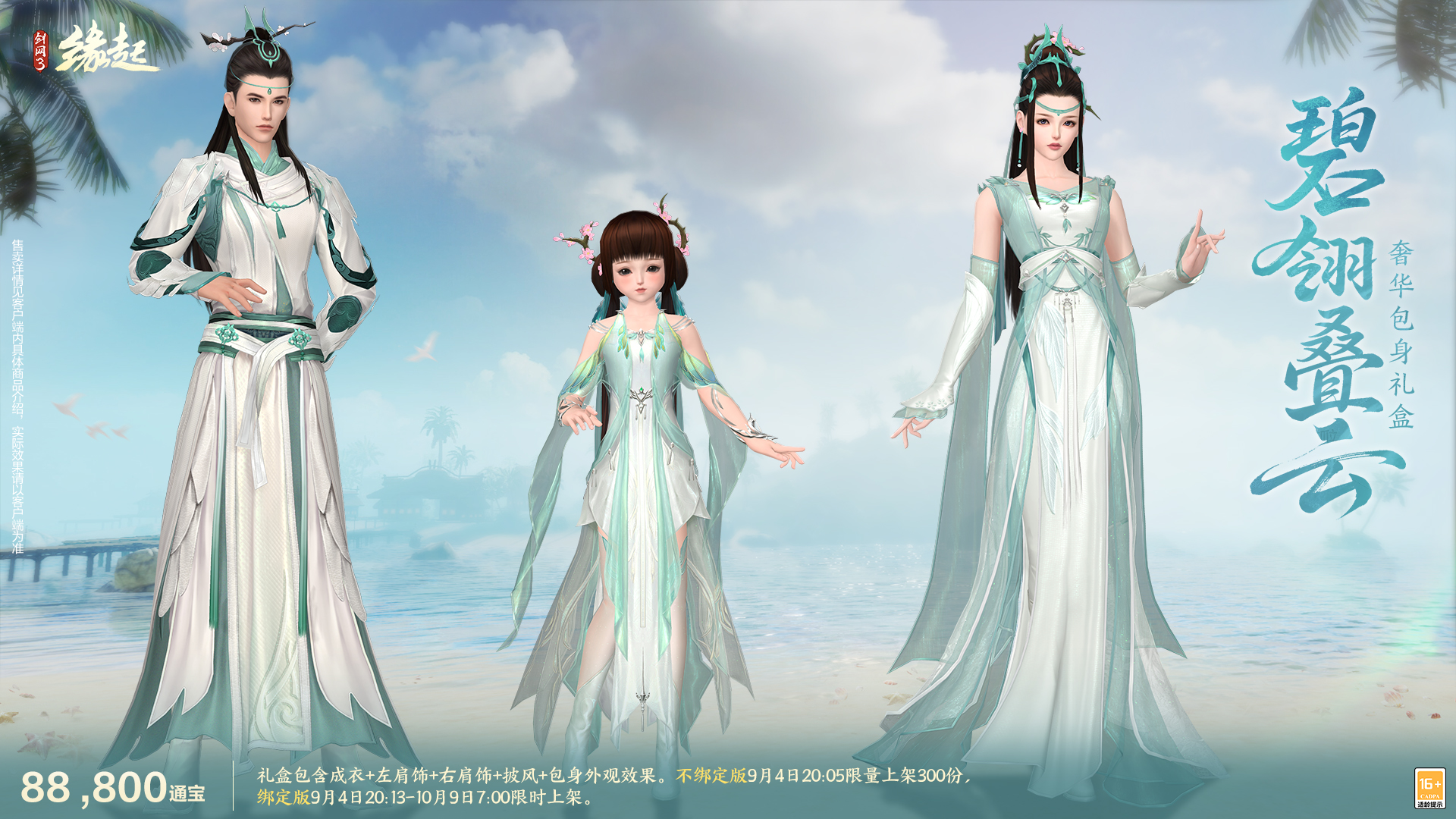 「剑胆琴心」赛季震撼启幕,95级等级上限正式开放!全新门派长歌门惊艳登场;轻功系统同步升级,助侠士纵览江湖更添潇洒;长歌门、千岛湖等新场景携新世界首领上线;「永王行宫?仙侣庭园」等秘境待你挑战;「宠物手记」解锁摸宠新趣,「朔风掠影」跑商、「塞外宝驹」奇遇等玩法焕新,更有七级五行石、特价橙武礼盒与「行侠令」新好礼等福利,邀侠士共赴新程! 95级焕新江湖 长歌门携新玩法登场 好礼惊喜齐相赠 新赛季好礼不断 惊喜好礼齐相赠 等级突破,赠礼相伴,新赛季福利狂欢开启!活动期间内,达到95级的角色可在花萼楼领取启程好礼一份!可获得七级五行石等好礼相赠。全新活动「大唐图鉴」即将登场,完成日常和新玩法得图册解锁图鉴,不仅可获免费易容次数和免费体型自定义次数,更有机会获得1100品定制橙武礼盒,该礼盒享600通宝拓印特价,超值优惠活动不容错过!「行侠令」好礼同步更新,每周参与玩法解锁金币、五行石等江湖实用好物,更有绑定版七级五行石相赠!豪侠令赠礼加码,更有全新外装、精美好物及专属头像框等好物等你来拿。侠士速来参与活动,尽情畅享新赛季! 95级启新章 长歌门携琴音闯江湖 一琴一剑一江湖,清韵绕梁藏侠骨,等级上限开放至95级,全新门派长歌门惊艳亮相。长歌门武学独具特色,以内力催发琴音,轻则惑人心性,重则伤人无形,亦能奏律平复伤势,更融古圣贤天地自然之道,成就“气与曲合、琴音鸣剑”的核心风格。琴与剑随心切换,攻防兼备,其加入为江湖战局添新变数,全新篇章正待侠士开启! 永王秘境风云起 新域同步待侠征 汉王旧事风云涌,各路豪杰展雄威。全新团队秘境「永王行宫?仙侣庭园」震撼开启,此地揭开汉王杨谅旧部后续故事的神秘面纱,神偷世家卫家、心怀算计的公冶菱等势力纠葛不断,谢云流、李重茂等人物也在此上演精彩剧情,李白身份更是扑朔迷离。团本内屈焰阳、森九岚等多位风格迥异、实力强劲的首领严阵以待,等待侠士组队挑战。同时,微山书院、梵空禅院等全新大战秘境,以及剑踪幻域新地图「璨翠海厅」也同步上线,为侠士们带来更多冒险选择,诚邀诸位共赴新的秘境征程! 朔风掠影添商趣 全新对决燃新章 热血战斗再度点燃!95赛季晶矿争夺战震撼开启,阵营日常迎来全新战场。全新跑商玩法「朔风掠影」正式上线,打破阵营强弱限制,重新划分势力。绝境战场新地图「沧溟绝境」也将惊艳登场,东海群岛坐拥溶洞、火山、密林等复杂地形,搭配随时间收缩且可能随机移动的“海龙卷”缩圈机制,为战斗增添更多变数。侠士速速整装集结,定要在新战场大展身手! 奇遇手记新上线 奇遇侠客焕江湖 趣味江湖焕新登场!新赛季PVX内容惊喜不断,多样玩法等你探索。「奇遇手记」功能9月4日上线,新奇遇「塞外宝驹」「天涯无归」「度人心」携全新宠物奇遇同步上线,带来与神驹历险等别样体验,黑白路挂件新增可换色功能。全新侠客贺闲亮相,这位凭剑术与音律造诣出众的角色,将以“相知剑意”展现凌厉攻势,结识后可成为侠士行走江湖的一大助力。生活技能迎来大改造,生活装备新增三条属性,新装备助力生产,成长路径更自由,通过百工行材料捐赠、图鉴收集等玩法,还能兑换挂件、跟宠和坐骑。诸多精彩已就绪,期待侠士开启这段趣味之旅! 装点新赛季 外观新品一览 碧羽裁云凝雅韵,浪海飞天绘新途。江湖全新好物登场,邀你共焕新季风采!奢华包身礼盒「碧翎叠云」以纯白衬碧色,翎羽纹饰随衣袂轻扬,仙气满溢全程;特效外观「浪海浮波」踏浪来袭,衣摆晃动如碎浪翻涌,触发特效时海浪虚影环身,裹挟着海风的清凉感扑面而来;月限外观「紧那罗歌」取意敦煌飞天神韵,衣袂化作流云飞带,随步生风灵动飘逸;金发「卧梦楼兰」融西域风情,金饰点缀间满是神秘贵气;萌兔挂宠软萌模样治愈所有闯荡疲惫;金发同款特效头像框「像韵?卧梦楼兰」流光闪烁,甜兔头像框及表情包自带可爱buff;更有三档充消赠礼携1.5倍积分回馈开启,入手心仪好物还能多赚积分,让惊喜与实惠常伴侠途! 奢华包身礼盒「碧翎叠云」 碧羽裁成云外裳,叠叠轻绡映日光,全新奢华包身礼盒「碧翎叠云」悄然降临。以纯净白为底,搭配清新碧色,似云雾缭绕于青竹之间,衣袂舒展如羽翼轻振,翎羽纹饰与飘逸质感交融,演绎出云间灵羽的唯美。 成男款广袖飘逸,袍身线条流畅,碧色翎羽纹饰灵动分布,暗绣碧色翎羽于衣袂间翩跹欲飞,勾勒出清风朗月般的温润出尘之姿; 成女款裙裾层叠,缀满银线绣制的碧色翎羽自袖侧倾泻而下,行走时,翎羽似随步伐轻晃,优雅动人,将女子的柔美与灵动完美融合; 萝莉款雪纺裁就的碧色衣裙仿若云絮轻叠,数百片渐变翎羽如流霞翩跹,层层交叠间似将少女笼罩在碧色光晕中,灵动娇憨的气质呼之欲出。 售卖信息: 售价88,800通宝, 礼盒包含成衣+左肩饰+右肩饰+披风+包身外观效果, 不绑定款9月4日20:05限量上架300份, 绑定款9月4日20:13-10月9日7:00限时上架。 特效外观「浪海浮波」 碧海无垠,浪卷潮生,全新特效外观「浪海浮波」踏浪而来。以莹白为底,搭配清透色彩,似将海洋的灵动与澄澈凝于衣间,衣摆晃动如海浪起伏,饰纹若波光闪烁,诉说着关于浩渺大海的浪漫。 成男款以极简剪裁勾勒利落廓形,腰间缠绕的饰带缀满贝壳浮雕与浪花暗纹,随步伐轻扬生姿; 成女款以银丝暗绣的雪色绡衣搭配曳地云纹