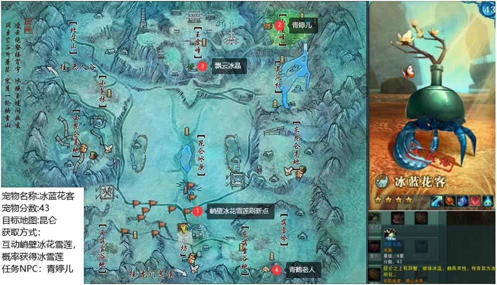 互动峭壁冰花雪莲,概率获得冰凌雪莲,后续任务去小遥峰找青婷儿。