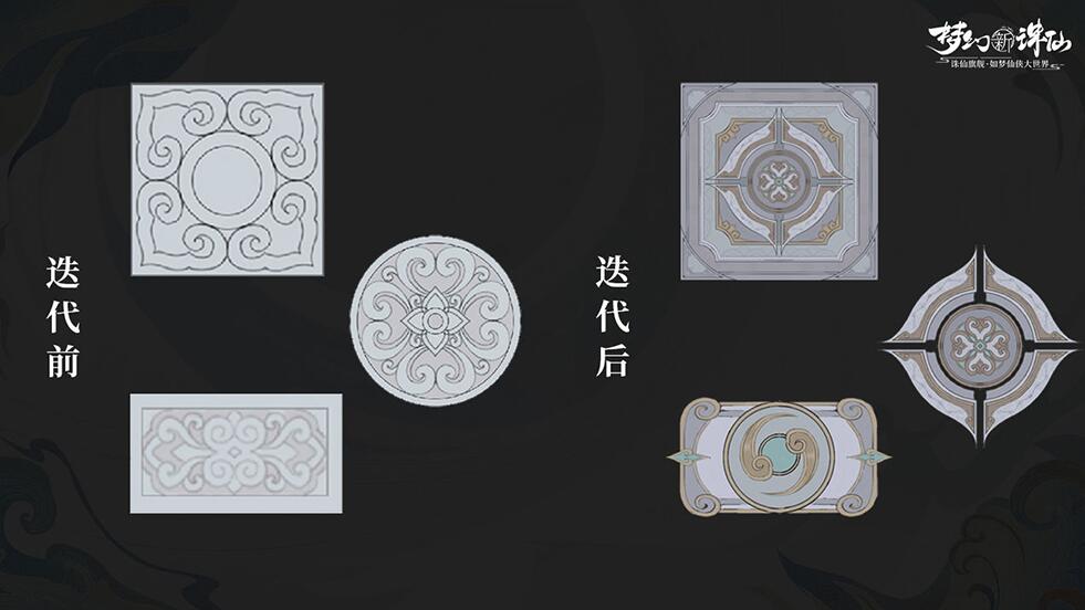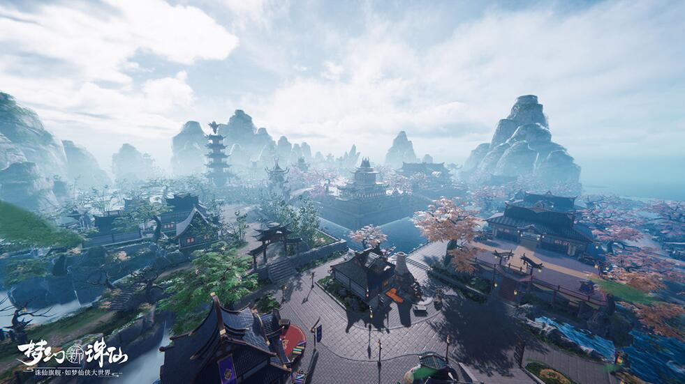 这一版首先可以看出仙侠元素增多,色调也明亮了很多,更契合《梦幻新诛仙》梦幻唯美的调性,各建筑物件在设计上也有很大改进。