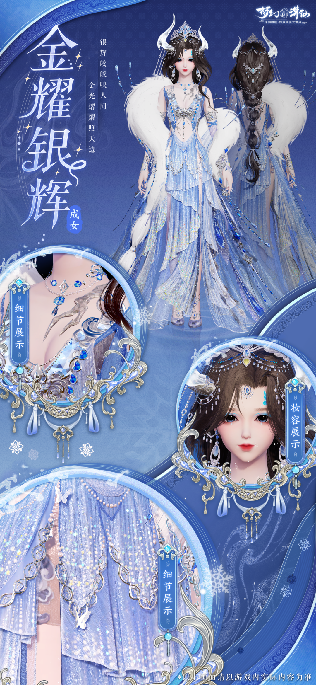 金光熠熠照天边,银辉皎皎映人间。 匠心独运,剪裁出彩,金光银熠交相辉映,羽毛轻盈得如同纯洁的冬雪在空中飘逸,穿上全新时装·金耀银辉,仿佛置身于奇幻的世界里,每一寸布料、每一颗珠宝都闪耀着别致的光芒。 01、雪中邂逅 在一个银装素裹的冬日,雪花如同精灵般在空中翩翩起舞。 她伴着烛火读书,一位游历四方的书生因躲避风雪而误入此地。雪花纷飞,目光交汇,两人在雪中烛下夜谈,从诗词歌赋谈到人生哲学,彼此的心渐渐靠近。 成女时装展示 白色羽毛缠绕在身,如同冬日里的雪花翩翩起舞。一袭浅蓝色的长裙轻轻摇曳,璀璨的珠宝闪光夺目,既灵动又梦幻。银制的王冠上镶嵌着蓝色宝石,一对兽角晶莹剔透,与服装色彩完美呼应,为整体增添了几分高贵与华丽。 成男时装展示 黑色如夜空般深邃,金色则如星辰般璀璨,黑金交织在一起,营造出威武霸气的氛围。羽毛轻盈地飘散,如同夜空中飘落的雪花,飘逸与灵动呼之欲出。一双金光熠熠的兽角,更是为整体增添了不少力量感。 少女时装展示 多层叠的裙摆轻轻摆动,似是波光粼粼的水面,充满了动态的美感。银色的装饰则如同月光洒落,耀眼的珠宝点缀其间,闪烁着迷人的光芒。一对精心雕琢的兽角,古灵精怪又神秘莫测,如同雪间的精灵。 少男时装展示 以黑色为主色调,金色作为点缀,两种颜色搭配别有巧思,剪裁更是透露出匠人的精湛技艺。白色的羽毛配上金色的轻纱,风中飘摇,更显灵动。搭配金属链子,冷冽的光芒更为整体添了几分硬朗。 02、寒夜传情 自那邂逅,两人心中却都种下了对方的影子。他们通过书信传递着彼此的情感,每当夜深人静,她便会坐在窗前,用细腻的笔触,写下对他的思念与爱慕;而他,每晚都会拿出她写的信细细品读。 原色效果一览 染色效果抢先看 染色色号参考 【黄白】 成男: 头: #FFFFFF #D6C8A7 衣服: #E7E7E7 #FFFFFF #DFDFDF #E4E2E1 #CFC7BE #FFFFFF #FFFFFF 成女: 头: #FAE5AF #FFFFFF #EAE8B9 衣服: #FFFFFF #DCC386 #FFFFFF #EED867 #DAC056 #FFFFFF 少男: 头: #FFFFFF #AB9172 #B08134 衣服: #FFFFFF #FFFFFF #D6D6D6 #EDEDED #D1CBBF #FFFFFF 少女: 头: #FEE9C4 #FFFFFF #ECD986 衣服: #FFFFFF #FFFFFF #F0D76F #D4C58B #FDEE91 #EADFC5 ------------ 【粉白】 成男: 头: #C27878 #D6C8A7 衣服: #E7E7E7 #FFFFFF #CECECE #C6C1C1 #BCBCBC #AC9797 #FFFFFF 成女: 头: #E67C7C #FFFFFF #E38D7C 衣服: #FFFFFF #D70050 #E28F95 #F45967 #F27373 #DFD5D3 少男: 头: #E89B9B #CBBAA6 #C2C2C2 衣服: #FFFFFF #FFFFFF #DFCFCD #CBCBCB #B7B7B7 #C9AEAE 少女: 头: #ED9797 #FFFFFF #D39FA1 衣服: #FFFFFF #DD6685 #D74D75 #DDB6B0 #C16C6C #FFFFFF 03、春回情定 随着冬日的结束,春天的气息悄然降临。带着对她的深情厚意,终于完成了游历,踏上了归途。 在春日的暖阳下,他们共同漫步在花海中,分享着彼此的思念,感受着爱情的甜蜜与温暖。 妆容展示 耀金银 金银交错映双眸,一世情深两难求。 背饰展示 背饰·藏天地 紫金葫芦藏天地,叫你一声可敢应? 飞剑展示 飞剑·纳四海 羊脂玉瓶纳四海,万里江河一念收。 今天的时装分享到这里就结束啦!届时,道友可前往活动「登台初见」特惠礼包界面,限时3折,使用金锭带回时装哟~ 更多资讯,请锁定叶子猪《梦幻新诛仙》官方合作专区。 编辑:叶子猪小秘书