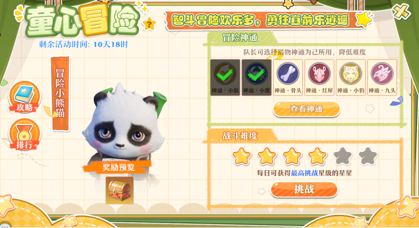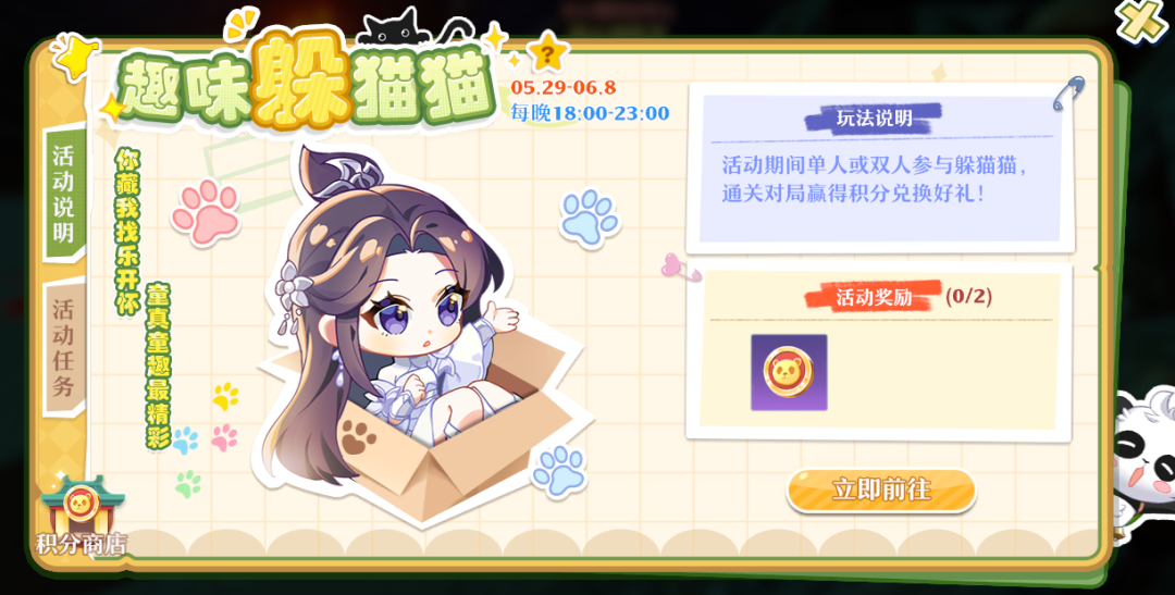 道友们好~ 不知道大家小时候有没有幻想过,自己也能像动画片里的超级英雄那样,穿着披风闪亮登场,威风凛凛。 现在,儿时的梦想即将照进现实! 5月29日(维护后),童趣乐园就正式开始营业啦!想要体验一下当超级英雄的感觉吗?那就来童趣乐园,在「趣味躲猫猫」和「童心冒险」里试试你的身手,让你一秒穿越回无忧无虑的童年时光! 趣味躲猫猫 据小梦观察,超级英雄都有过人的能力:有的可以随意变换形态,巧妙地伪装自己藏匿起来;有的有一双火眼金睛,轻松就能找到同伴的藏身之处…… 如果你有这样的能力,那你就是天选的躲猫猫高手! 自从小梦为大家报道了试营业的童趣乐园中有躲猫猫,大家都很期待,不少道友都自己是躲猫猫高手,已经放出狠话。 真的吗?不如你先来看看下面几张图,猜猜图中的道友藏在哪里了! (图源:热心道友) 嘿嘿,你是轻松地猜出来了,还是费了好一番心思找寻呢?不管怎样,是不是已经体验到了躲猫猫的魅力啦! 5月29日~6月8日,每天18点~23点,让我们一起来躲猫猫! *研发中版本,不代表最终上线品质 道友可选择单人或者双人参与躲猫猫,通关对局即可赢得积分兑换好礼! ·身份随机 参与活动的道友将被随机分为寻找者或躲藏者,你可以尽情体验到不同的乐趣。 ·寻找者任务 寻找者需要擦亮眼睛、活用技能,探查并抓捕一定范围内的躲藏者,抓到所有躲藏者即为胜利! ·躲藏者任务 而躲藏者可以伪装成为场景中的随机物件,藏匿身影,苟到倒计时结束就是赢家! *研发中版本,不代表最终上线品质 参与活动即可获得[躲猫猫积分],解锁多种奖励,2025元宝福袋、摇光精粹、气海蜃珠宝匣等大礼静候你带走!快来秀出你的“伪装术”或“侦察力”,看看谁能笑到最后~ 童心冒险 谁的童年没藏着个小小英雄梦呢,幻想自己像动画里的超人一样,身怀超能力。想要超能力?这个愿望现在就能实现! 5月29日~6月8日,每天10点~23点30,道友可以前往参与活动「童心冒险」,体验超能力战斗的快乐!想当超级英雄,就来这里吧! *研发中版本,不代表最终上线品质 在「童心冒险」的奇妙战场,冒险神通藏着不可思议的能力。 战斗前选择神通,可以削弱怪物、强化己方,不过道友也得注意,这可能会降低挑战星级哦~ 挑战不同难度的星级会得到不同奖励,星级越高,奖励越丰厚,道友可以根据自己的策略进行取舍。挑战3星及以上难度,有机会获得天帝琼浆、摇光神石、果脯拼盘和一阶蜃珠等奖励! 每天可获取当日最高挑战难度的星级数,每累积到一定星级数,就能获得累积进度奖励,有机会解锁百炼玉、打造自选礼盒、元宝福袋等好礼! 除了这些奖励,每天挑战星级最高、回合数最短的前50名道友还可以获得限时称号“童心冒险王”,让你成为炫酷的超级英雄,享受荣誉傍身的快乐~ 赶快一起来「童心冒险」体验超能力加持的别样战斗吧,更多奇妙体验正等着你呢! 编辑:月光下完美