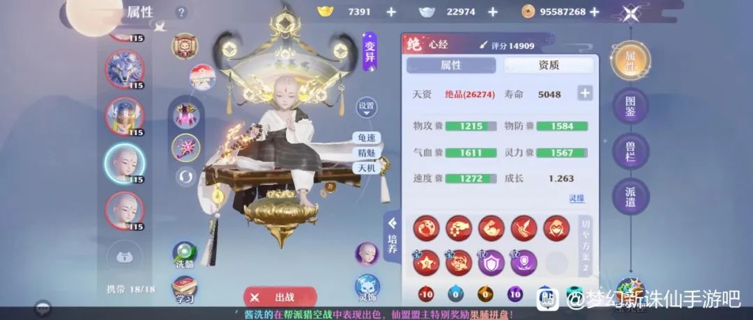 亲爱的道友你们好呀~ 有的道友是锻造神匠 有的道友则是洗髓圣手 今天咱们就来近距离观察那些欧气满溢的灵兽 还能顺道学习一波大佬的打书? 这回真是不能错过啦! 最近洗出的极品千速! By:热心道友(贴吧)-南玖九 小梦回复 满速资满成长,顶级千速的必备基底,想做卡速也更容易,道友这运气是真的不错呀! 只不过这宝链……别人说最近洗出来的我不信,你说是最近洗出来的我真信,这是真着急忙慌的就按上去用了。答应小梦,下一个双红宝链给这位顶速美男鱼好吗! 我这小和尚又如何? By:热心道友(贴吧)-梦魇ss34 小梦回复 看完千速看尾速,这小和尚不算尾到极致,但胜在比较慢的同时坦度超绝,综合实力非常不错。 在高级迟钝和神机妙算的减速下,一般也很难找到同坦度下比这更慢的啦!要是坐骑符文再上个迟钝术那更是尾速之王,这就是天机排位的战术小和尚~ 万能卡速海嘟嘟来啦 By:热心道友(贴吧)-英特 小梦回复 6技能灵兽主打一个“万金油”,快点可以配上力合欢和治疗的速度,慢点可以卡上输出的速度而且坦度更高。只不过道友这只海嘟嘟的灵力资质比较低,缺法防怎么办呢? 就如宝链上的高级隐身,“躲起来”规避伤害也不失为一种好办法!更别说还有护灵和电亲和呢,现在输出都喜欢电神器,电亲和就相当于百分比全伤减免,无敌!道友好打书! 一般般吧,也就差不多图鉴~ By:热心道友(贴吧) - 亚_美蝶 小梦回复 喔!道友这只猫猫看着打人就很疼。1731的物攻资质和1.305的满成长,别的猫要三刀清一宠,这只猫可能两刀就能解决! 别的资质也是非常满啦,说是图鉴灵兽其实完全没问题呢。打书方面也值得PK道友们参考学习,慧眼+神罚双驱,妥妥的清宠高手猫~ 编辑:月光下完美