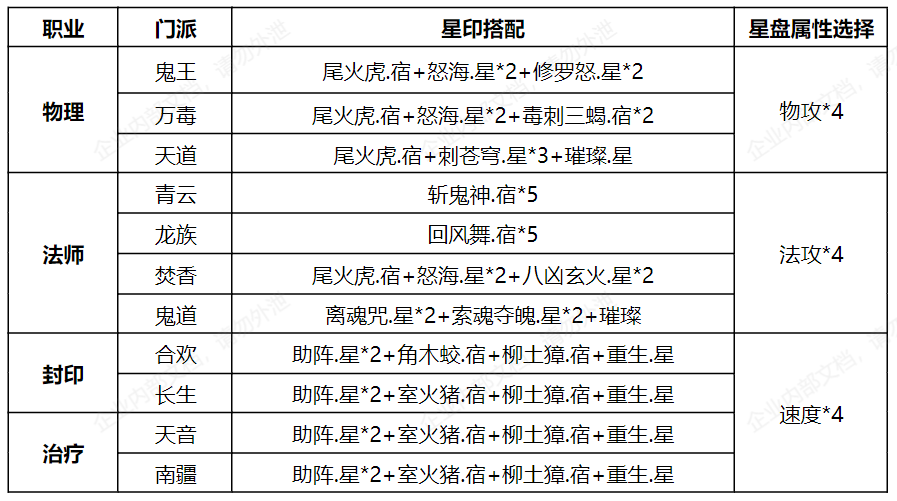 门派星印搭配 以下的星印搭配,主要是以通关高层为主 这里注意一下封印、辅助的星印搭配要跟队伍商量星印的佩戴,助战小鸡也不要超过5个。 ↑点击查看大图↑ 云顶小妙招 云顶里面有很多小窍门,包括部分职业的一些小妙招,道友灵活运用再搭配正确的星印,通关云顶也是轻轻松松! 下面就给大家讲讲,云顶里的小妙招。 1.室火猪 神魂缭乱抓取目标的时候,自身速度越快抓取成功率越高所以速度能上1200最好 封印以外的职业,星盘属性选择速度正常情况下是足够的。 2.天道 云顶天道的伤害来源主要依靠于怒气,所以装备方面推荐带聚灵或者是怒灵。 3.群星 组队的时候尽量组齐封印、物理、法师和奶妈,这样对怪物造成伤害的时候会得到提升,对通关或者重复刷取奖励都有帮助。 总结 云顶新赛季的精彩还在继续,不管道友是哪个门派,都能在云顶天宫里找到属于自己的乐趣。 更多游戏攻略,请锁定叶子猪《梦幻新诛仙》官方合作专区。 编辑:叶子猪小秘书