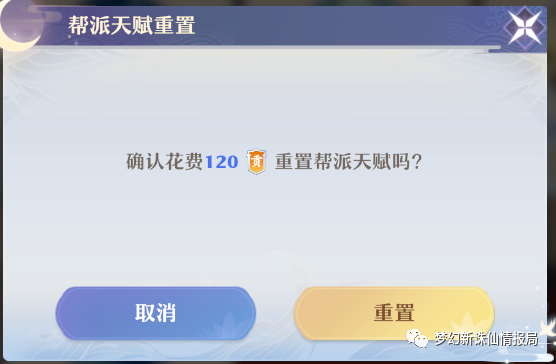 每次重置帮派天赋需要花费帮贡,有时候提前点一下天赋来获得属性提升还是不错的,等到关键等级解锁天赋后再重置分配(你点的天赋越多,重置时需要消耗的帮贡也越多)。