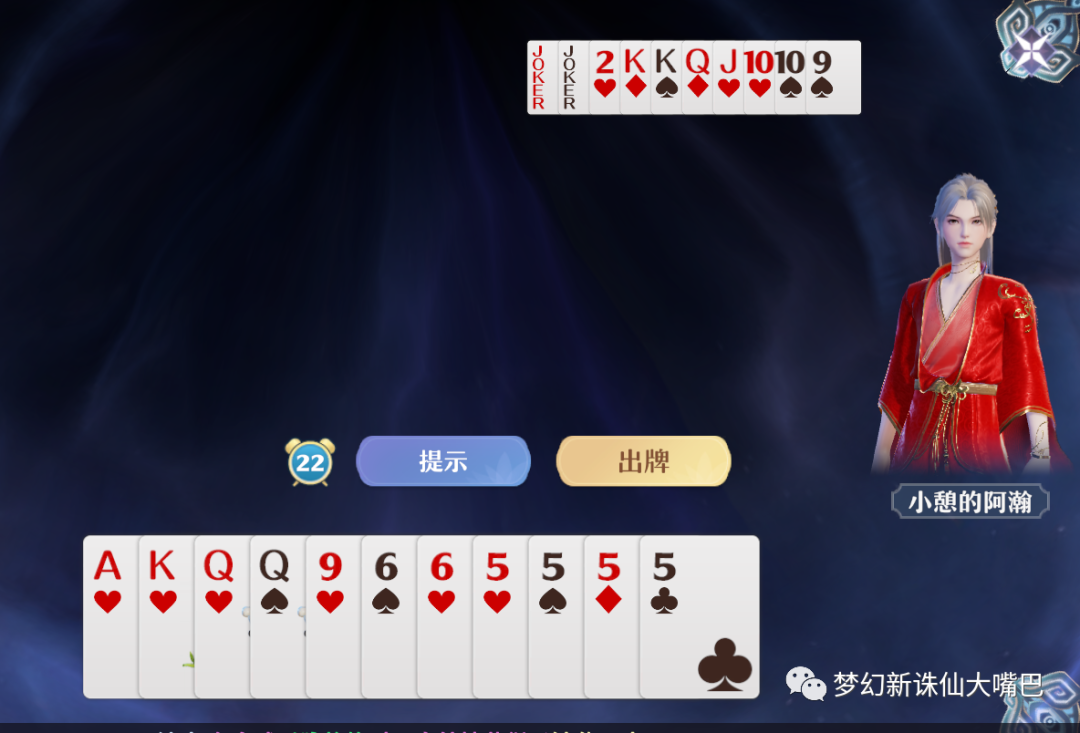 2号探灵点:我方先K、对方2、我方不要、对方10、我方A、对方对王、我方不要、对方9至K顺子、我方炸、对方不要、我方对6、对Q、再出9即可获胜