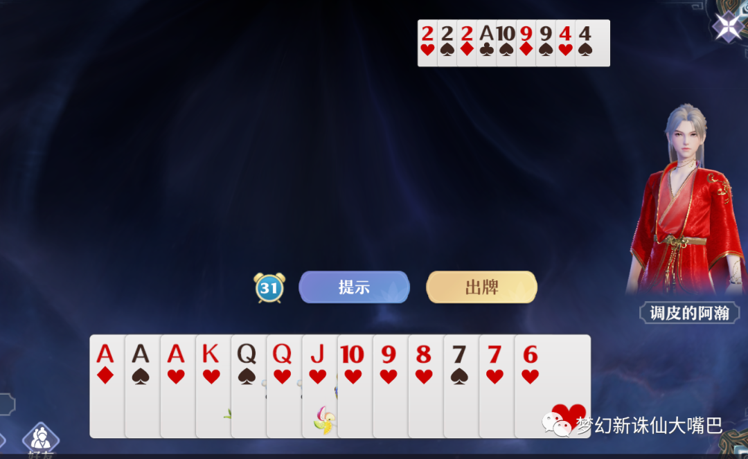 本期为大家更新狐岐山探灵,与阿瀚打牌的天问残局有2个单人点位,获胜方法如下: