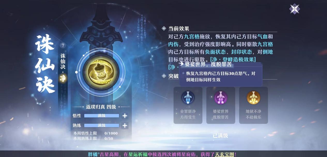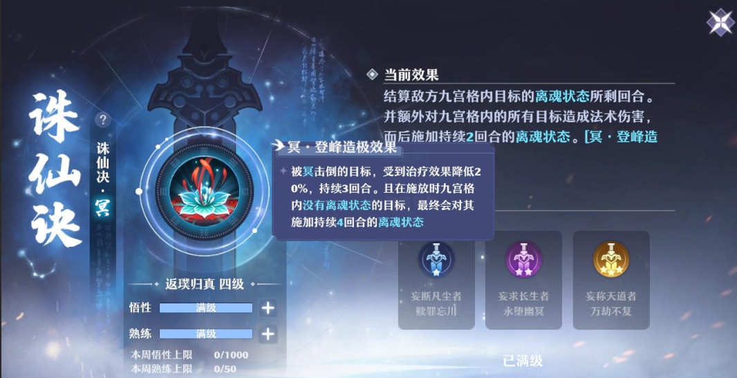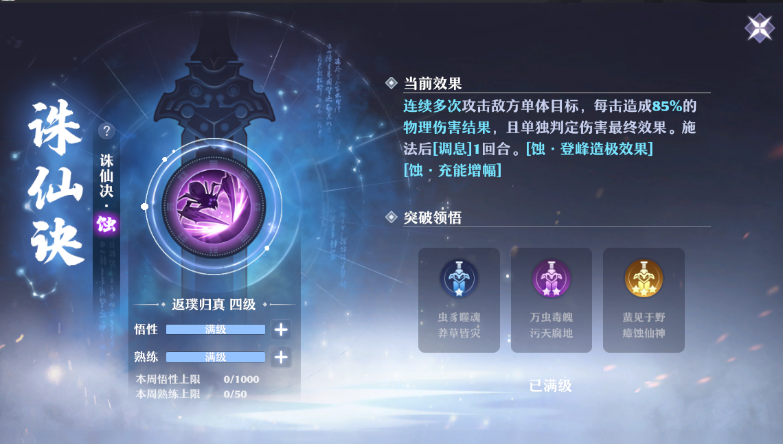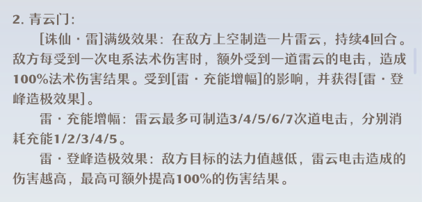 《梦幻新诛仙》诛仙诀上线“抢先体验服”,人物升级到110天人境,即可解锁诛仙诀技能,战斗内技能无CD,有充能就能使用,其技能效果之华丽,简直让人大开眼界!甚至有玩家看完青云诛仙诀之后直言:这才是真正的“九天玄煞,化为神雷,煌煌天威,以剑引之”! 在抢先测试服中我们可以看到,突破到110级就能免费领悟诛仙诀,满级最高领悟突破到4级,使用诛仙诀需要消耗充能点,而充能点可以使用法宝消耗法宝灵能时获得,充能点越高,诛仙诀威力越强大,最多可以获得5点。 那么接下来就给大家带来体验服第一手诛仙诀爆料,各大门派诛仙诀技能强度如何,又会给门派地位带来怎样的提升?我们一起来看看! 1、青云门 《梦幻新诛仙》青云的诛仙决效果被玩家评价为最厉害的,咱们看看有何过人之处?首先这个诛仙决效果战略性比较强,因为是持续一个四回合的雷云,这样在后面基本都可以保证完全触发,另外在充能达到5点后,可以制造7次电击伤害,在所有诛仙决技能里,在伤害数量上名列前茅。 最重要的就是它的登峰造极效果了,敌方法力值越低,雷云电击造成的伤害越高,这样搭配青云的天书技能天罚,可以让敌方损失大量法力值的同时,也大幅度提高了雷击的伤害,可谓杀伤力全梦诛第一,在PVP持久战后期可以爆发出强大的威力。 2、焚香谷 焚香的诛仙决技能,也沿袭了一贯对焚香门派的定位来设计的,那就是超高爆发!对九宫格内的敌人最高造成7次伤害(5点充能),如果九宫格内只有三人,那么最多一人会受到三次伤害(1点充能)。 如果我们在释放诛仙决技能之前,焚香先扔一个火法宝,那么只要7次伤害便能达到90%的法术伤害,爆发力比青云更高,但是要调息一回合,所以计算一下收益,充能低于3点就不划算了! 3、鬼道 鬼道的门派定位是法术辅助,但在战斗后期,鬼道造成的伤害也不容小觑,诛仙决冥的效果,可以让鬼道进行爆发一波,结算伤害的同时,造成大量的法术伤害,而且还可以进行减疗,挂离魂状态,是一个多功能性的技能效果。 4、鬼王宗 《梦幻新诛仙》鬼王的诛仙决技能也一样,受到了非常多玩家关注,因为诛仙诀极大加强鬼王特色,强化鬼王宗群攻能力,而且鬼王宗的诛仙决技还有特别之处! 第一个就是哪怕充能不满,也可以攻击8名目标,这样充能不满也可以使用,砍八刀之后进行调息一回合,尤其对面有较多残血单位之时,可以更好地守尸。 第二个就是无需疯魔状态,这样在鬼王没有疯魔状态时,有需要群秒输出,来不及使用疯魔啸时,除了天书技能阎罗,此诛仙决技能也是一个很好的选择。 第三个就是敌方单位不多,需要集火目标时,鬼王的诛仙决技能,也可以最多对一个单位进行四次攻击,除了群秒也兼顾了集火能力,当然充能越高收益更高。 5、万毒门 如果说诛仙决对于鬼王宗是进一步强化其群攻能力,那么对于万毒来说,则是进一步强化单攻能力了,最多可以攻击单个目标七次,基本秒谁谁死呀,继天书技能奎牙之后,万毒的单秒能力进一步加强。 每充能1点造成85%的伤害结果,而且还是单独判定伤害最终结果,爆发高还不怕伤害溢出,攻击次数完全取决于充能点数,目前看来是1点充能攻击3次,每多1点充能增加1次,攒满5点充能攻击7次。 6、天道府 我们对于天道府诛仙决的评价,就是两个字——灵活,因为天道府诛仙决有个特点,那就是登封造极效果具有眩晕效果,这个是很实用的!诛仙·伐3级解锁攻击目标时,将其向后冲撞一个站位格位置。 相比之下充能增加的那些伤害反而可以忽略不计,所以天道府不需要追求充满灵能,可以释放了就直接释放,对于天道府的灵活性和控场性可以起到极大增强作用。 7、合欢派 合欢的诛仙决技能还是比较强的,诛仙·魅每1点充能增加10%命中率,最高60%(5点充能),和天书技能落英相比,增加了封印命中率,可以更好命中敌人,另外它还有一个很战略性的功能,那就是和一个队友可以互换站位。 这样如果合欢是一速的话,可以起到很大的作用,比如要被集火或者守尸的时候,和己方奶妈互换位置,可以避免倒地,另外登峰造极效果更是给其附加合欢铃状态,可以在关键时刻扰乱对手安排。 8、长生堂 《梦幻新诛仙》长生的诛仙决技能,也偏向于战略性,在己方负面状态较多或者被封较多时使用,可以达到转移负面状态的效果,尤其是如果成功转移几个封印状态,无疑可以起到改变战局的作用,另外除了转移负面状态,还能增加增益状态,同理,对于战局的改变可以起到积极作用。 9、天音寺 天音的诛仙决效果受到广泛好评,对于九宫格内友方,加血恢复内伤,另外还可以驱散负面状态和封印(包括万毒蜈蚣状态),简直是万金油技能,而且登峰造极效果还可以恢复怒气,30点怒气值在战斗中可以起到很关键的作用。 10、南疆古巫 天道是给自己队伍驱散负面状态,而南疆则是给对方队伍驱散增益状态,而且驱散的同时可以给己方队伍回血,尤其对方有群体增益,比如金刚之类的增益时,也可以成功驱散增益,而且还可以降低敌方怒气,达到控怒的效果。 总结而言: 《梦幻新诛仙》诛仙诀作为最强大的仙法,为110级职业提供1个特殊主动技能,让各个门派在战斗定位上都大放异彩,随着悟性和熟练级别提升,大家也将获得更为高级的“终结技能”,强大到足以“诛仙斩魔”的诛仙诀效果! 不过诛仙诀也很依赖于充能点数,想要积攒到5点充能一般要到17~18回合,全队要配合法宝使用