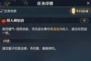 【本文由叶子猪原创,未经允许谢绝转载】 《逆水寒》每日奇遇任务中,有一个人生赢家的任务,让玩家寻找逆水寒中最幸福的人。很多玩家都找不到逆水寒中最幸福的人在哪,今天小编就给大家带来逆水寒人生赢家的奇遇任务攻略。 逆水寒中最幸福的人是汴京的丁三石(823,453),在下图的红圈内。也可以在汴京地图内,点击地图的顶部的搜索人物,搜索丁三石寻路。 使用望气技能后,再选中丁三石使用洞悉技能,即可触发后续任务。 (图片出自网络)