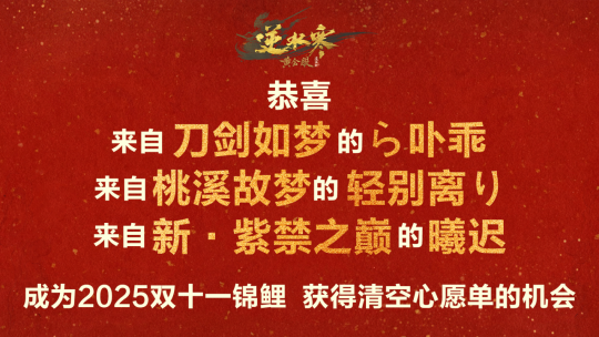 各位同门大家好呀,这里是正在疯狂吸欧气的小寒~ 就在昨晚帮会联赛开启前25分钟,江湖鸿运喷发,让所有人都羡慕不已的三位幸运锦鲤同门脱颖而出! 他们以绝对的好运,拿下2025双十一清空心愿单的机会,成功让雷火掏腰包买单!大家快来一起祝贺接好运~ 接完锦鲤好运,相信同门在往后的江湖之旅和生活中一定能顺风顺水顺财神,好运不断万事顺! 要说到好运,小寒不得不提最近回归的塔防玩法,运气与谋略结合,筑造不败防线拒敌千里之外,好玩到根本停不下来! 全新天星阵法的加入,让每一局体验解锁了多样化可能,结合棋子、羁绊、场景等全方面焕新,直接将星空赛季塔防的可玩性拉到顶点! 塔防回归第三天,聪颖过人的同门们就已摸索出了几十种搭配阵容,天羲十巫+血怖宫、逆水之寒+外功流、财迷心窍+贪财阵法......其中薛魔主更是被评为塔防最好用的棋子! 来源大神评分榜 小寒跟着同门学套路,每把都能稳过30波!必须分享给更多的同门一起塔防一起爽~ *以下攻略来自玩家分享,不代表官方观点 保姆级教学 从0到塔防高手 除了阵法、棋子等方面焕新外,星空赛季·合作塔防也有诸多细节优化,若是同门此前未曾体验过雾海守莲玩法,可以通过同门@夏安然是我呀?的攻略教学,从0学会塔防玩法! 合作塔防·星空赛季基础攻略 30波、1600?轻松拿捏! 跟着同门@卫於斯?分享的塔防攻略,从运营思路到过渡节奏,再到棋子阵容搭配,一学就会。区区塔防,拿下!丰厚活动奖励,全部带走! 点击加入叶子猪逆水寒玩家群QQ群:711879579。或者打开微信,扫码添加叶小猪好友,回复“14”,叶小猪将拉你进玩家微信群。 更多逆水寒攻略请关注叶子猪逆水寒专区:http://www.yzz.cn/game/nsh/。 编辑:月光下完美