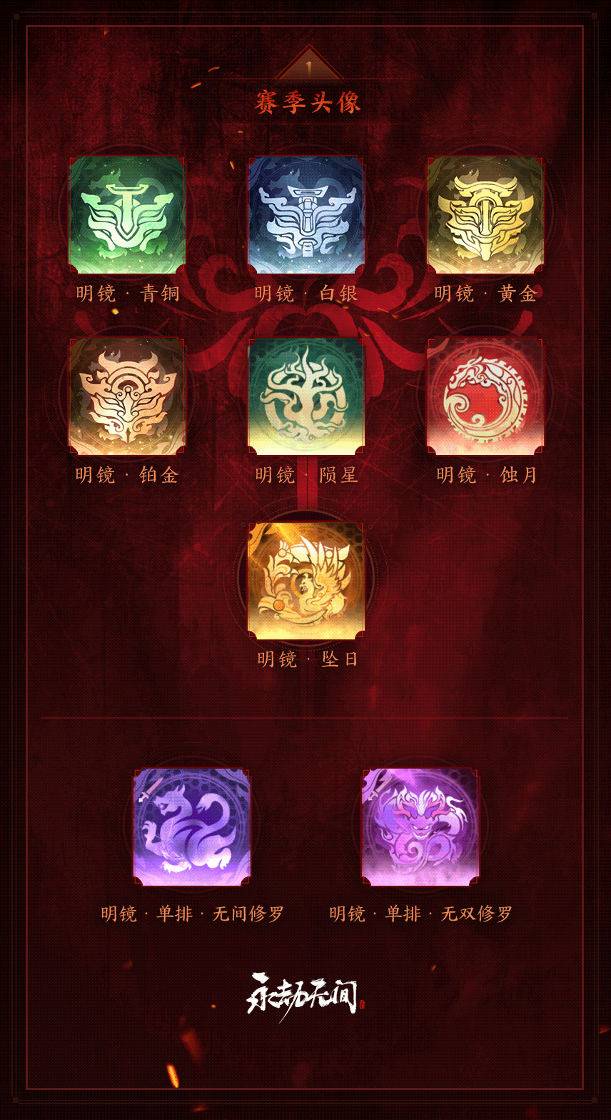 明镜赛季 结算公告 赛季回顾 亲爱的玩家: 明镜赛季即将在2024年北京时间4月11日8:00结束,届时会对本赛季的段位进行结算。感谢玩家们在明镜赛季中提供的宝贵建议,我们将继续努力为玩家提供更好的竞技体验! 在明镜赛季的征程中,充满灵活博弈的新武器【横刀】与掌控玄武之力的新英雄【魏轻】相继登场,他们的出现为永劫的战斗增添了全新的要素。 此外我们也联动斗罗大陆推出了一系列精美的联动皮肤——唐三·特木尔、小舞·土御门胡桃、霍雨浩·胡为、唐舞桐·沈妙以及海神三叉戟……并在游戏中加入了魂兽、魂骨等丰富要素,让各位英雄沉浸式的体验联动氛围。 期待在下一个赛季中,我们还将为大家带来哪些有趣的内容和全新的挑战吧! 赛季奖励及积分重置的具体说明如下,新赛季更新后登陆游戏即可领取奖励。 赛季奖励 1.【排位赛奖励】 根据玩家在明镜赛季的排位赛单排、双排、三排中所达到的赛季最高段位发放赛季奖励。 无间修罗、无双修罗段位社交头像奖励区分单排、双排、三排,且不同模式可重复获得。 2.【天人之战奖励】 根据玩家在明镜赛季的天人之战单排、双排、三排中所达到的赛季最高段位发放赛季奖励。 根据玩家在明镜赛季获得的天人榜历史最高称号,发放本赛季的社交头像奖励。此外,赛季结算时天人榜的在榜玩家也可获得社交头像奖励。 天人榜最后一次结算时进入前三名的玩家还将获得专属英雄印。 社交头像与英雄印奖励区分单排、双排、三排,且不同模式可重复获得。 英雄榜 赛季结算时,处于英雄榜全服榜的玩家,将获得对应英雄的社交头像奖励,该头像无法重复获得。可前往名片-社交头像查看所有头像。 此处仅展示部分头像,效果以游戏内为准 赛季奖励展示 1、哈迪优品时装【织锦衫·琥珀】 2、匕首极品皮肤【桡尺刀】 3、匕首极品皮肤【月尺刀】 4、优品小队展示背景【承平】 社交头像及英雄印展示 1.【赛季头像】 此处仅展示单排头像,效果以游戏内为准 2.【天人之战头像、英雄印】 此处仅展示单排天人之战头像、效果以游戏内为准 积分重置 1、玩家的天选之人单排、双排、三排段位积分会部分继承到新赛季。 2、玩家的天人之战单排、双排、三排段位积分不会继承到新赛季。 3、玩家的英雄积分与地脉之战、暗域狂潮、无尽试炼、武道争锋积分将部分继承到新赛季,积分越低继承比例越高。但继承后的分数上限为10000分; 感谢您对《永劫无间》的喜爱,你们的反馈对我们至关重要。新赛季即将开启,欢迎各位英雄前来体验! 更多赛季资讯,请锁定叶子猪《永劫无间》官方合作专区。 编辑:叶子猪小秘书