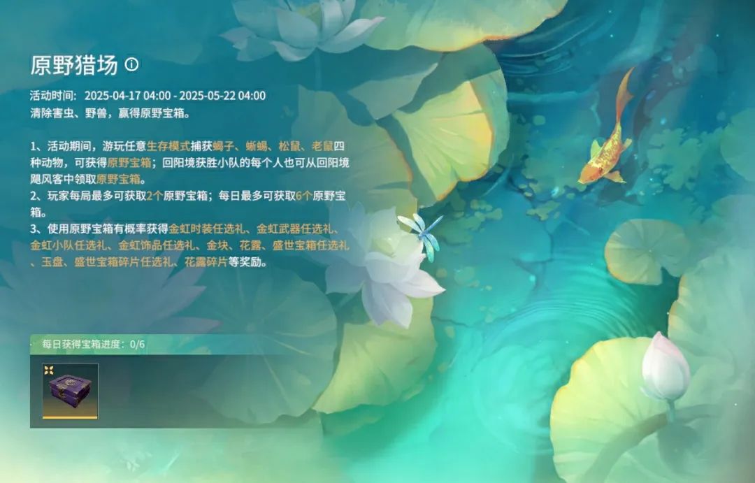 迦南极品时装【巅峰极速·蕾雅】 那么玉盘能从哪里获得呢 上号就有! 参与常驻每周奖励、白泽月卡、限时活动等方式,均可获取道具【玉盘】,劫宝今天就为英雄们介绍介绍4月17日更新后即将上线的四大活动,每个活动都可以领取、兑换超多玉盘,助力每个英雄无痛拿下揽月阁福利~ 02单次最多2000金块,那210次是? 至多可拿210个原野宝箱,每个宝箱都可开出玉盘、金块、花露的活动,你玩不玩? 原野猎场活动 这是什么?打一下~ 游玩任意生存模式,捕获蝎子、蜥蜴、松鼠、老鼠四种动物,可获得原野宝箱;在回阳境获胜小队的每个人也可从回阳境飓风客中领取原野宝箱。 活动时间 2025年4月17日更新后-2025年5月22日 活动奖励 单局最多可获取2个原野宝箱,每日最多可获取6个原野宝箱,意味着活动期间,英雄们至多可获取210个原野宝箱! 只要游玩任意生存模式,开启原野宝箱,开启【原野宝箱】获得玉盘、金块、花露、盛世宝箱任选礼等超丰厚奖励,还有内含热门极品外观的金虹任选礼等你来拿! 玉盘 金块 金虹任选礼 【寒烟素】、【观山海·精卫】、【花之倾奇】等多款极品时装等你任选! 金虹时装任选礼 金虹武器任选礼 金虹小队任选礼 金虹饰品任选礼 03 “探宝”可换6款极品外观! 皮肤都想要?“探宝”活动直接换!极品时装、燃耀赛季宝箱【燃耀宝炉】、过往所有赛季宝箱任选、美乐蒂和大耳狗头像、美乐蒂表情气泡......一个活动全部满足! 探地问宝活动 参与对战开启落物堆、游玩征神之路均可获得【炎晶】,前往【探地问宝】活动,消耗【炎晶】挖宝,可获得4种矿石,解锁多重奖励! 活动时间 2025年4月17日更新后-2025年5月8日 活动奖励 每集齐5颗月瞳矿石,即可获得一份【金虹献瑞礼】,内含【掘灵币】*50、玉盘*40以及星辰宝箱任选礼*2(可任选燃耀赛季前所有常驻宝箱及赛季宝箱)! 使用掘灵币,还可兑换天海专属极品表情动作【熊熊步】、魏轻专属极品底座【栖凤台】、金虹时装任选礼、金虹武器任选礼、金虹小队任选礼、金虹饰品任选礼以及动态头像【三丽鸥家族·美乐蒂】、【三丽鸥家族·大耳狗】、表情气泡【美乐蒂】、玉盘等丰厚奖励! 天海表情动作 【熊熊步】 魏轻极品底座 【栖凤台】 金虹任选礼 04签到再领宝箱! 劫宝劫宝,还有没有不吃操作也能领的福利?有的英雄,有的!三天签到、参与小游戏也能领宝箱~ 七曜筑火活动 只需登录签到,就可领取燃耀宝炉*1、盛世宝箱任选礼*1以及玉盘*30! 活动时间 2025年4月17日更新后-2025年4月24日 体验小游戏,领限定头像! 【焚心破茧】小游戏同步开启,4月17日更新后~5月8日12点,点击预约即可领取限定头像【灼燃】! 体验小游戏,点击“淬炼心境”,可获取心境片段,收集心境片段可领取盛世宝箱任选礼*1、表情气泡【季沧海·冒火】! *注:限定头像【灼燃】、表情气泡【季沧海·冒火】领取后,将于5月8日更新后发放至领取角色的邮箱内! 05玩征神全新活动, 兑换丰厚奖励 全新玩法【烽火百炼】、法宝系统即将上线,体验征神新活动还有3个盛情宝箱自选礼拿! 【炼心荡魔】活动 参与【炼心荡魔】活动,完成任务获取道具【烽鸣币】。 前往活动兑换页面,可以消耗【烽鸣币】兑换盛情宝箱自选礼*3、头像【秘符】等丰厚奖励。 活动时间 2025年4月17日更新后-2025年5月1日 首次体验征神可领稀有水晶! 除了首次参与征神之路玩法,即可解锁活动【征神之路·启程】,七大奖励等你领! 每天通关任意关卡,即可直接领取强势魂玉套装、武魂宝箱任选礼及神品道具【稀有水晶】等超多奖励哦! 超多极品外观、金块、花露全都免费送!以上福利活动均于4月17日开启,快来上号体验吧~ 编辑:月光下完美