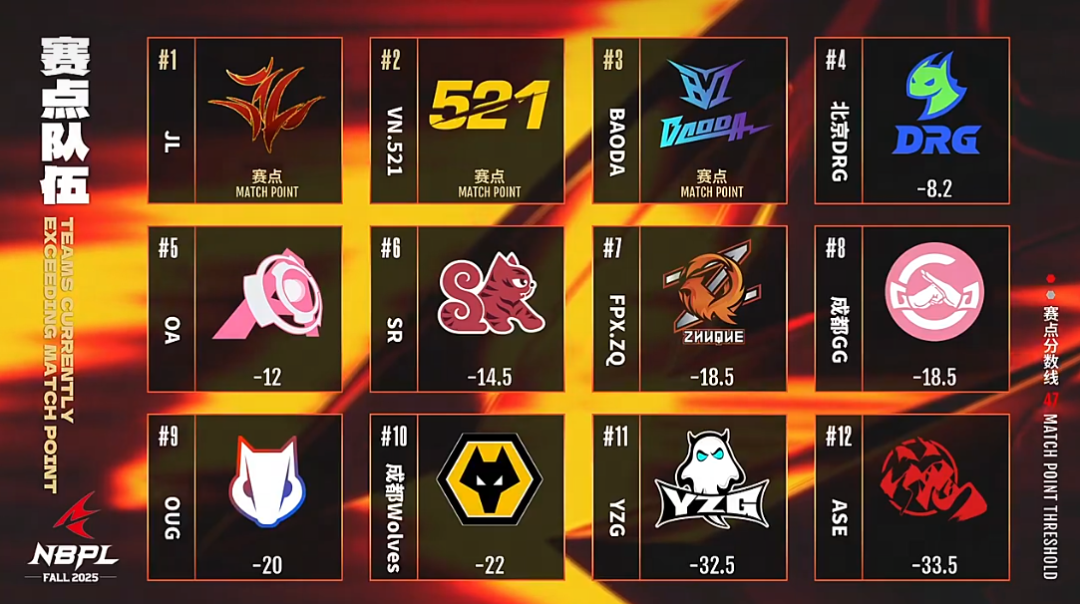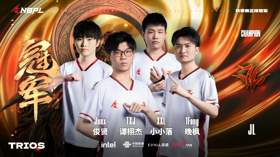 让我们恭喜 2025秋季赛三排总决赛冠军 JL.1Feng(晚枫) JL.TXJ(谭栩杰) JL.Junx(俊贤) JL.XXL(小小落) 打破质疑 实力夺冠 智勇无双 锐不可当 冠军将在明天为 大家送上全服奖励—— 苍古宝箱任选礼*3 (含裂变宝炉在内的过往宝箱任选) 侠风通币*3 秋季赛随机礼包*3 幻丝*800 大家记得明日上号前往邮箱领取哦! 第一局:决赛圈斩“神”,BAODA拿下首局开门红 首局为冰红席镜像对决,多支队伍攻击性拉满,在落地阶段就大打出手。前期OUG在先掉一人的情况下最终夺得四个击败分,甚至还获得了阴狐内丹,可惜在第一轮回阳败给FPX.ZQ,断掉进攻节奏。与此同时JL连续赢下两轮回阳境,狂砍击败分,逐渐势不可挡。 决赛圈,VN521二人残编试图强开JL但被JL及时支援化解。随后JL再次凭借默契配合,在多支队伍的火力中占领地脉,获得青龙之力加持的JL一鼓作气再收FPX.ZQ二人,可惜此时JL三人奥义全交,梅花桩阶段BAODA.XXmu(小小沐)席拉开启奥义先点掉JL.Junx(俊贤),而后顺势拿下JL其余二人,凭借19个击败荣得本局天选之人。 JL在战火纷飞中成功占领地脉 第二局: 回阳境双赢,北京DRG残编拿下大分局 第二局张哈殷镜像对决,VN.521落地阶段状态火热先带走FPX.ZQ再斩OA,率先起势。而另一边的OUG则是两擒ASE,将ASE淘汰出局,可惜在第二轮回阳境被JL以二打三击败,丧失优势。与此同时,北京DRG凭借两轮回阳境双胜的绝对优势迅速脱颖而出。 决赛圈阶段,场上只剩北京DRG、VN.521、SR三队,北京DRG虽然拿下地脉获得白虎之力,但顶不住VN.521爆风燃烧的持续消耗,先掉一人。千钧一发之际,北京DRG.XLYu(小鲤鱼)操控殷紫萍利用白虎之力控住场面,先后击败两人并与北京DRG.Kakaxi(卡卡西)默契配合最终凭借残编拿下本局天选,也收获了大分局! 小鲤鱼在决赛圈最终阶段连斩SR两人 第三局: “最强刀团”VN.521决赛圈连斩两队 成都GG、北京DRG、OUG三队落地相遇,成都GG率先击败北京DRG二人,OUG顺势切入,成都GG.Cjs(陈姜声)表现出极强韧性,一秒三振刀高光频现,与队友配合成功拿下OUG,达成落地两连斩。 随后两轮回阳境对决,JL都凭借过硬实力顺利拿下,积累下不菲的击败数。可惜决赛圈阶段,JL为占地脉,奥义全数交出,被各队屠戮殆尽,提前淘汰出局。而一直低调运营的“最强刀团”VN.521大显神威,先后斩下ASE和北京DRG,揽得本局天选之人。 决赛圈VN.521瞬间切入拿下北京DRG 上半场结束,未有一支战队开启赛点,悬念依旧! 第四局: 稳健运营不断发育,OA追赶赛点 SR.Xhao(小豪)落地开出紫飞刀,在与ASE的对战中,小豪一个振刀处决直接收下ASE.XiaoWen(小温),配合队友顺势拿下ASE其余二人,没想到后续与ASE再次相遇,直接二擒ASE将其淘汰出局。极帝城混战中SR再收三个击败分,但是在第二轮回阳境中被不断发育的OA斩落。 决赛圈,OA占下阳极地脉,继续扩大优势。而独狼BAODA.XeM(小恶魔)利用爆风燃烧不断挂火,在最后阶段还收获了两个击败。最终独狼JL.TXJ(谭栩杰)与满编OA平局收场,不过OA凭借积累的最高击败分,荣膺本局战神。 独狼小恶魔利用爆风燃烧连收两人 第四局结束,JL、VN.521、BAODA三支战队开启赛点!但后面的队伍也正手感火热,结果如何仍未可知! 第五局: 五局拿下,JL19个击败夺冠打破质疑 本局落地架阶段,多队展开对战各展其长,都有积分入账。首轮回阳境后,ASE和JL双双起势。待到暗域逼近,ASE于四象地脉处从天而降,ASE.XiaoWen(小温)高手冰女连收VN.521两个击败,直接将赛点选手VN.521率先淘汰出局。 决赛梅花桩阶段,ASE按耐不住先点YZG,JL.Junx(俊贤)张起灵抓准时机拔刀猛砍数人,与队友配合接连将各队屠戮殆尽,成为场上唯一满编队伍,最后3打1将BAODA.XeM(小恶魔)顺利斩下! 最终JL战到了最后,获得了2025NBPL秋季赛三排总冠军!恭喜JL,打破质疑,用实力证明了自己! JL成功捧杯! 2025秋季赛总决赛 三排亮点速报 FPX.ZQ zge(朱鸽)、keke (柯柯)、water(阿水) 强势出击 配合默契! 第一局镜像对决的回阳境中FPX.ZQ对上了OUG,FPX.ZQ率先发难,FPXZQ.water(阿水)的宁红夜、FPXZQ.keke (柯柯)的席拉先后开大控场,OUG.Ss(苏苏)想要通过回阳境中的柱子来躲避并消耗FPX.ZQ的奥义后再反打,但柯柯紧追不舍,瞬间强炫目住两人,阿水配合默契一个F再沉默两人,FPXZQ.zge(朱鸽)也紧跟补蓄力,此时胜局几乎已定。 柯柯的席拉强炫目住两人 VN.521 Pampy(潘皮)、iBinn(伊宾)、PhatMilk(牛奶哥) 落地连斩两队 优势拉满 刚一落地VN.521碰上了FPX.ZQ,两队都吃到了萤火虫,经过一波双方张起灵的奥义置换,VN.521的血量见底,但VN.521.iBinn(伊宾)的哈迪及时开启奥义,为队友争取时间,战局扭转,FPX.ZQ陷入劣势,此时OA进场想要收获渔翁之利,但VN521选择逐个击破,凭借VN.521.PhatMilk(牛奶哥)的奥义回复好状态,先带走FPX.ZQ再斩OA,顺利获得5个击败分,积攒了优势。 VN.521先后带走FPX.ZQ和OA 成都GG Lxm(李鑫淼)、Cjs(陈姜声)、330(三三零) 武田大王一秒连振三刀! 刚落地成都GG、北京DRG、OUG三队在矿洞相遇,混战间大家都猛蓄猛出,成都GG.Cjs(陈姜声)抓住机会振刀,创造名场面一秒连振三刀,成都GG直接占据优势,三队拉扯间,成都GG.Cjs(陈姜声)的武田果断开启奥义,队友配合他的妖袭补伤害,陈姜声又不断振刀,另外两队在他们的默契配合下陨落! 陈姜声一秒连振三刀 OA ab(蒙)、kuku2(酷酷)、TuTyc(图图) 最强运营,顶级拆火! 回阳境OA与SR相遇,且两队为同阵容,OA展现出了自己的运营水平。一番拼刀之后,SR.Xhao(小豪)与OA.TuTyc(图图)的张起灵几乎同
