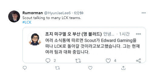 大腿都绝望了?EDG-Scout想要回国 已有多支LCK队伍询价