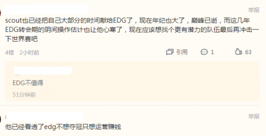 今年的转会期尚未开启,但各大赛区的网友们已经通过诸多方式,掌握了许多关于选手转会以及战队人员变动的内幕消息。当前T1正因为让解说加入教练组,而受到粉丝们的抵制。LEC那边的G2战队,则因为阿P的交易流言,失去了往日的快乐气息。 LPL这边依旧沿袭了一直以来的憋气传统,反倒是往常在转会期鲜有出手的EDG频频曝出人员变动的消息。上个星期EDG的内部人员就曾在直播时确定了韩援T皇因为便宜,被爱德朱拿下的消息。 而在今天上午,又有消息称Scout想要回韩国,目前正与多支LCK队伍接触的消息。 对于Scout这名选手,无论是EDG的粉丝还是LPL的观众想必都非常熟悉。他作为EDG自Pawn之后最为知名的韩援选手,多年来见证着这支队伍的潮起潮落。 从当初与厂长并肩作战,到而今与Meiko支撑着队伍前行,没有人能想到这个将整个职业生涯都留在EDG的大龄选手最终会选择离开。LCK从明年开始施行联盟化,兴许是Scout考虑转会的原因之一。不过最核心的问题,可能还是因为看不到EDG的未来了吧。 在最近两年的比赛里,EDG在让粉丝失望这件事情上,从未令人失望过。如果说S9被IG以42滴血翻盘只是开端的话,春季赛在领先1w经济的情况下被RNG反推,则已经是地狱十八层级别的表现了。 随着夏天首次无缘季后赛,淀粉们早已躺平。在看看EDG转会期买人的首要参考条件居然是“便宜”,仍旧想要去S赛再战一场的Scout希望回到韩国加入LCK队伍,也就不是什么难以理解的事情了。 如今提到优秀韩援,很多人只会想到Rookie、The shy、Doinb、金贡这些为LPL拿下S冠的选手。但Scout、大舅子这些曾为LPL征战,却没能在最后成功登顶的选手也值得大家尊敬。 Scout如果真要离开,即便是淀粉也说不出挽留的话。与其在EDG蹉跎一年,回到LCK去一支舍得花钱、想要出成绩的队伍再拼一年,显然才是更适合他的路。 大家觉得EDG在后厂长时代,还能重新崛起吗? 编辑:F