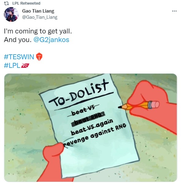 TES淘汰V5 时隔八年LPL春决全华班聚首 小天:Jankos等着我