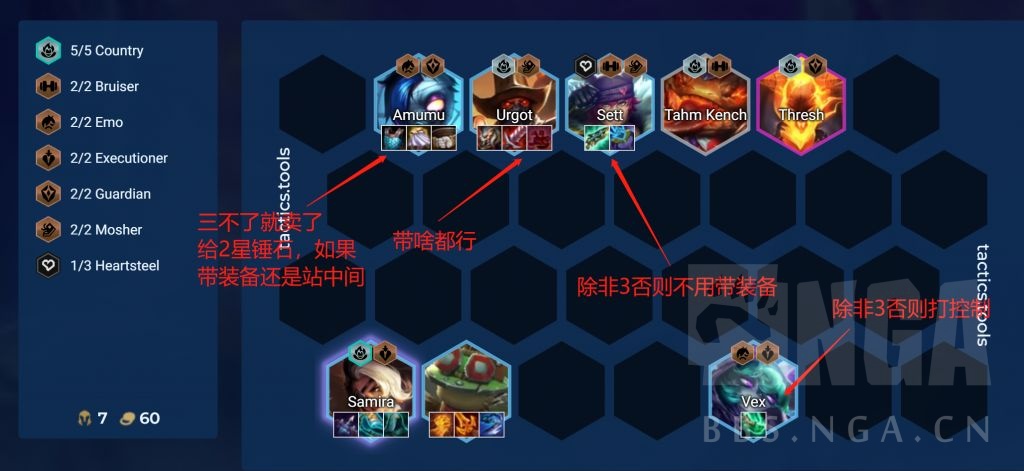 这是我上次第一天PBE之后的总结,目前混车学了不少新东西,偷出来给大伙讲一下 前情回顾:聊聊关于PBE20把之后的一些心得 叠甲 我的风格是只玩低能赌狗,4费C是不碰的,运营不了一点,这个帖子只涉及我相对熟悉的1-3费主C阵容。只要开局能分辨对手的思路,很容易在正确的回合拿到3星关键牌,不要怕连败,当然能连胜肯定更好 跟排位的区别 顶分车的优点是都会比较灵活变阵,错开同行。因此很容易出现3阶段1家3星3费,4阶段选秀前又有2家3星3费,目前赌三费能玩的阵容很多,且相互不怎么卡,中期强度很高,能摁死运营不够熟练的对手: 1.女枪 2.瑞雯 3.莎米拉螃蟹(瑟提薇古丝阿木木) 4.拉克丝 5.铁男(可能被瑞文卡几张) 6.艾克+法师(强度下降但容得下2家,理解好也能玩) 1费赌狗 凯南 凯南虽然很冷门,但我要首推!在第一天还是作为整活尝试,但一个星期下来已经是凯南人柱力了。高手更多是开局用天选凯南开超粉过度,但(我不是高手)如果有机会的话,强烈推荐赌3星称霸34阶段,2阶段连胜连败都可以玩 凯南有三个优秀的地方: 1.天选效果可以电击回血,直接理解就类似龙牙的效果,尤其是除了头盔后,把对面直接电麻 2.凯南的闪光效果非常离谱,直接增伤80%,同时也意味着回复量+80% 3.凯南的技能是无视距离的伤害+眩晕(是的无视距离!),户口又带了护卫,开4超粉还有吸血和冰甲提供的额外双抗护盾,3星凯南之后5阶段之前很难输 户口超粉最好,护卫不错,真实最差。但3星最重要,基本没得挑,来了就用没毛病。凯南身上如果背2个回血效果,算上闪光就是3吸,血量反复横跳,对局结束以满血收工,对面秒不掉凯南就是被入一卡车 装备:必备适应性头盔,第二件我喜欢科技枪,或者第二个适应性头盔(刚需4超粉吸血)。如果开局头盔海克斯,路人局锁定前二 前排离子日炎,后排电刀鬼书红buff,露露双回蓝,艾克纳尔妮蔻莉莉娅歌姬2星就可以继续拉人口上89找5费上限。 因为是1费前排C,吃鸡很看对手,但吃分只看自己,上限就看拉9之后能组出什么强度的阵容 ![]() ![]() ![]() 金克斯 金克斯算是新手最好上手的1费赌狗,每D都有提升,很多人都分享过,就提几点 1.主T一定不能是蔚,可以是潘森或者其他护卫包括后期的章鱼妈,但3星蔚3神装4阶段开始就扛不住了 2.超粉、高护卫都能玩,根据外面的情况决定 3.如果是朋克天选,可以养老鼠副C,配一个薇古丝+前排阿木木,老鼠3星3件拉满收割人头的强度很不错。当然月男能3也可以不养老鼠,看谁来的多 2费 塞纳 塞纳也是天选里比较离谱的几个。正常天选的提升强度在10-20%,塞纳则是50%起步 阵容基本就是高真实和高护卫两套,昨天有一把就是凯南前期疯狂连胜,最后输给两家6真实三星和9真实两星塞纳,凯南跟纸一样 ![]() 纳尔 虽然我很喜欢纳尔(上个帖子我也有提到过),但目前的环境纳尔太难三星了。是个人2-3阶段都想超粉打工,结果就是自己的回合需要6人口抽纳尔天选,而卡池早就低于一半 但如果赌出三星,强度绝对是有的。一种是超粉纳尔,一种是高舞者/高五杀纳尔,都能玩 超粉纳尔我喜欢单吸+双羁绊吸血=3吸,正义无尽最爆 还有一点,后期纳尔是可以不吃KDA格子的(如果你开了KDA),跳到对面C位脸上要比吃超粉那点属性重要的多得多,这点是打赢奇迹团的关键,普通排位局对手不会防开场跳的纳尔 轮椅和老鼠 轮椅被几轮削弱之后,目前已经不是第一梯队的天选了,属于正常强度 老鼠阵容对前排质量的要求十分苛刻,胡了可以前3,但个人觉得不是很划算,完全可以去玩塞纳之类的。老鼠看起来满爆技能有12个碎片的高额法伤,但即便我出了纳什,物理伤害还是占据65%,平A更疼 ![]() 3费 莎米拉 莎米拉不是最强的,但最近熟练度提高的比较快,先简单聊一下 这套最重要的地方,是体系有5张3费卡,相互清卡池。第一张三星越早,其他三星越早。的确很贵,但同时也意味着几乎每D都有1张体系牌。前期经济养得好,4-1冲出起码1个三星不是问题 莎米拉我试过裁决天选开4裁决,效果一般,前排容易顶不住,5马还是挺关键的 ![]() ![]() ![]() 拉克丝 又一套自成体系几乎不抢牌的阵容,连败没人玩就可以用拉克丝在4-1最晚4-2冲出3星,一般我是烂掉的局才考虑玩拉克丝(谁连胜转拉克丝啊),3星早很容易老八变吃分 最常规理解自然就是采样拉克丝,其他电子单位出偷偷和冕卫这种又肉又有输出的装备。记住只有活的久,电子舞曲拉克丝才有强度 拉克丝1回蓝(通常是龙刀)+2输出(帽子大天使纳什都行,纳什同时也是回蓝),不放心可以给一个正义(回复+暴击) 两种天选都行,尤其连败玩拉克丝的话,3星是必要条件,越早越好。5电子7人口4阶段锁血,4电子3耀光基本也能所,上8补第四个迪斯科耀光凑羁绊。有进阶玩法但基本掌握这些就可以逆境中苟烂分了 ![]() 下面这把路人强度低很多,一般这个质量的拉克丝在王者局2-3,常客优惠金克斯3-4 ![]() 瑞文和女枪 这两套我就不说了,外面有的是攻略。女枪严格来说是运营阵容,不刚需3星,可以连胜上9玩95 瑞文砍了但还是能玩,3星来得早跟鬼一样乱杀,当然已经不至于2星就砍瓜切菜了,莫狗让你再嘴硬说瑞文没bug 艾克法师 可能是PBE最早被开发的阵容,毕竟艾克太好用了,外面也是一堆攻略,我就不班门弄斧了 需要注意的是不要纠结3星艾克,又不增加眩晕范围和时间,就多了个狂徒的血量话几十块?抓紧上人口+琴女炸弹人触手妈才是王道 提一嘴,目前的