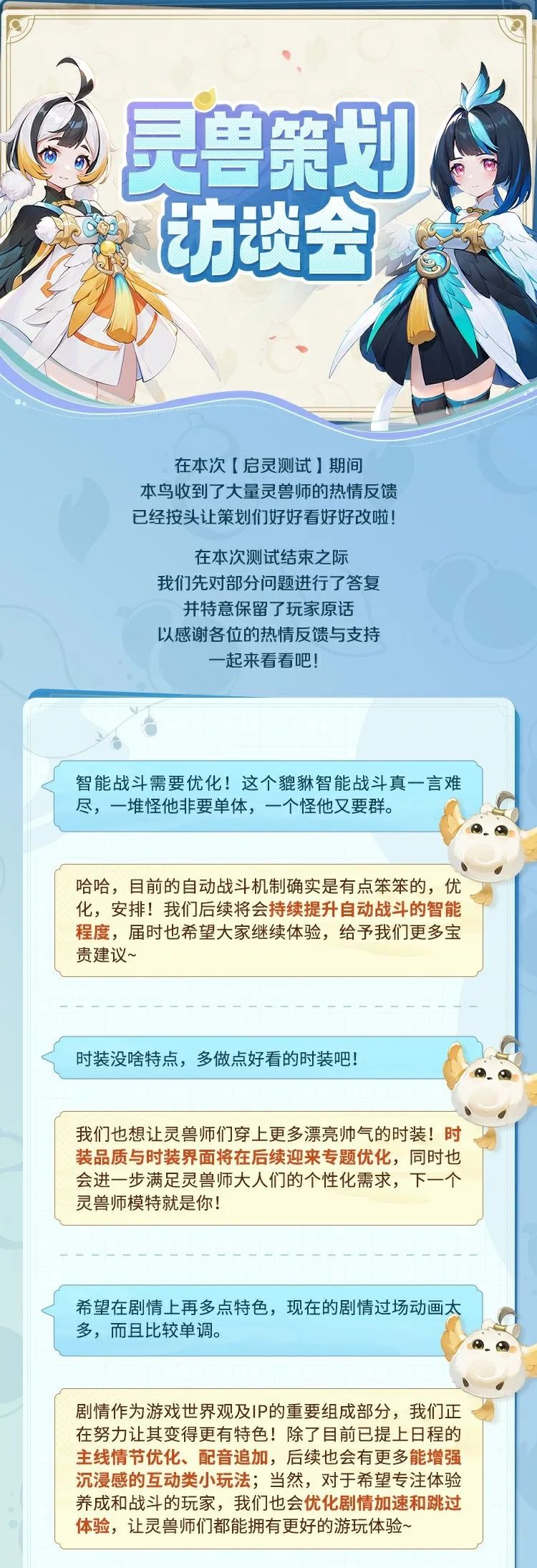 灵兽大冒险【策划访谈会】一起来看看启灵测试期间玩家问题的回复吧!