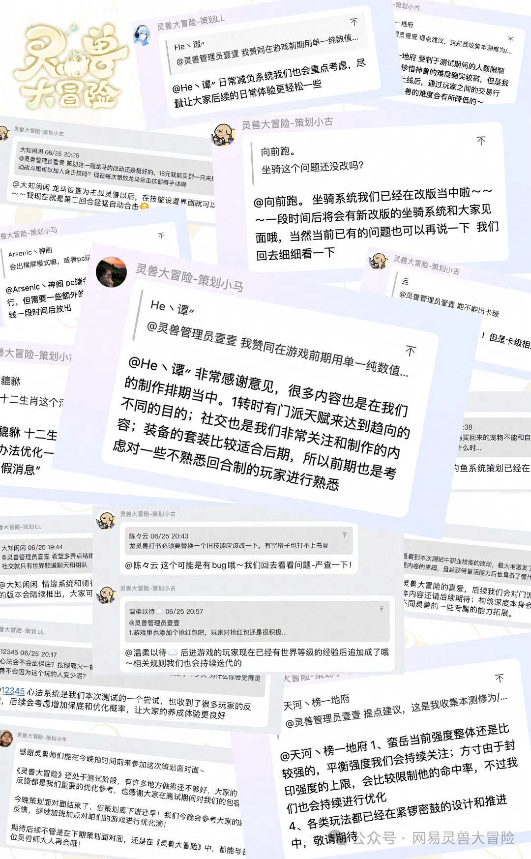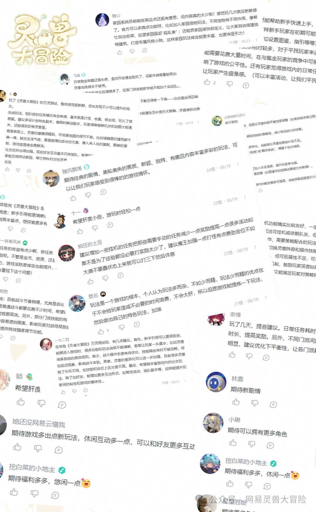 啾啾~各位灵兽师好呀! 自从上周日万灵测试结束后,游戏中少了各位活跃的灵兽师,鸟实在是有些寂寞! 恨不得逮着策划小马明天就开服,好和各位热情的灵兽师们再会!T T 但是面对从灵兽师们那里收集到的500+条宝贵建议,大家都深知时间紧任务重,必须全速对游戏进行调整优化,才能让游戏以更好的样貌和各位灵兽师们见面! 随着策划小马连夜加班熬秃头,鸟也努力对本次测试进行了一波复盘——让我们一起来回忆一下本次万灵测试中的点点滴滴吧! 字字珠玑,感谢陪伴! 在万灵测试期间,鸟收到了来自许多灵兽师的反馈,有真挚的鼓励,也有建议与鞭策;其中还不乏大佬给我们写了共计上万字的建议反馈,鸟看到都惊呆了! 感谢灵兽师们 陪伴我们度过测试的每一天! 收到了来自平台社区的 超多反馈点子! 不论是在社区激情讨论、畅谈想法的灵兽师,还是在私聊窗口激扬文字、狂码上千字意见的灵兽师,各位的真实反馈都是我们优化游戏的重要参考! 热情拷问,坦诚交流! 在万灵测试期间,我们第一次在官方社群内展开了策划面对面,五位策划同学进入社群,与灵兽师们针对游戏优化方向深入交流,听到了许多灵兽师的真实反馈,收获颇丰! 鸟看见策划小马在活动结束后从会议室全速赶回工位,即刻敲起了新的需求文档……燃起来了! 希望后续也能有更多和灵兽师们深入交流的机会! 策划在线接受 灵兽师们的热情拷问! 聚众合影,下次再会! 在测试结束前一个小时,天宫突然热闹了起来?鸟赶往现场一看,竟是灵兽师们齐聚天宫,拍起了大合照!世界频道还有许多灵兽师高强度刷屏,互相告别,畅想未来,氛围超好,鸟鸟感动一万年!T T 能在万灵测试遇见这么多热情的灵兽师,鸟的班味瞬间变淡! 鸟迫不及待想要和灵兽师们在游戏里再会了! 陆续前往天宫 拍集体照的灵兽师们! 整整齐齐一家人! 大家在世界频道互相告别! T T舍不得大家啾啾…… 最后 鸟代表灵兽大冒险开发组 再次感谢各位灵兽师热情参与本次万灵测试 并且给我们提出大量的宝贵意见! 我们会参考大家的意见 努力打磨优化游戏! 相信下次相遇 《灵兽大冒险》能蜕变成 更好玩更有趣的竖版回合制MMO游戏! 那我们下次再见咯!爱你们啾啾~ 编辑:月光下完美