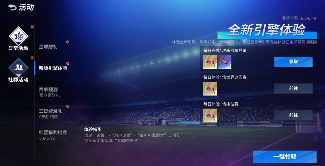 绿茵信仰:全新引擎正式上线 登录领二十连