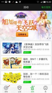 事实上,在笔者看来加加新功能的潜力远不止于此,如果将每款游戏的+U吧、公会、活动以及游戏论坛看成一个社交区域,那么这就是开发商可以主动运营管理线上运营平台。开发商完全可以借助这个第三方的运营平台,与用户互动,实现产品的交叉推广营销,从而提升游戏的用户留存与活跃度。 加加客户端截图
