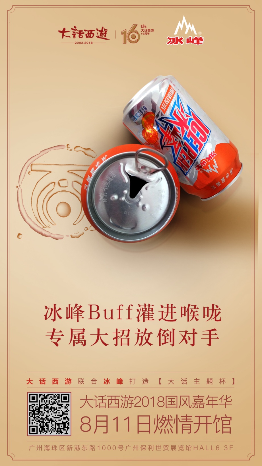 归来仍是少年,情义千里相聚。万众瞩目的2018大话西游国风嘉年华将在明日盛大举行,来自五湖四海的玩家将共聚广州保利世贸展览,一起庆贺大话16周年生日。在这里,你将与大话兄弟一同参与丰富的线下活动,享受为期2天的欢乐盛宴,千万不要错过哦! 【大话西游嘉年华专题:http://dhxy.163.com/2018/party/ 】 大话西游嘉年华叶子猪专题活动:http://xy2.yzz.cn/special/xzhd/ 国风盛会开启,嘉年华精彩活动抢先曝光 大话十六年,情义永不变。作为大话玩家的年度盛会,2018大话西游国风嘉年华将通过丰富多彩的活动,为玩家们奉上一场难忘的欢乐盛宴。届时,你不仅可以漫步于大话精心打造的长安城中,感受独特的古都风韵,还能尽情享受热闹十足的国风主题游园会,与兄弟一同参与趣味游戏,赢取限量周边,更有众多高颜值coser强势助阵,为你带来多重惊喜! 此外,大话西游无差别PK赛的四支最强战队——只想去上海玩、十年之约、小手一挥、【紫翌云天】,也将在嘉年华的舞台上展开最后的宿命之战,向着二十五万元现金大奖与无差别总冠军荣耀发起挑战!究竟他们会采用怎样的新奇战术,冠军又将花落谁家,一切都将在嘉年华现场为你揭晓! 另一方面,嘉年华现场还将开启大话西游全品牌发布会,公布最新的品牌动态与全线产品,全新玩法、重磅猛料、你想要了解的一切皆在大话全品牌发布会。不仅如此,在发布会开始前,还会举行神兽大抽奖活动,参与抽奖的玩家将有几率获得神兽——五叶,一定记得要参加哦! 共筑国风,大话西游与西安冰峰携手发力 强强联合,共筑国风。在前不久的无差别PK赛西安站决赛现场,大话西游品牌与西安冰峰饮料有限责任公司合作举行签约仪式,共同推出冰峰大话西游主题罐,引发了大众的广泛讨论。如今,两大品牌将正式展开异业合作,以西安记忆弘扬大话国风,以情义江湖传承老陕真味。 作为有着相近理念的两大品牌,一边包含独特文化内涵与历史韵味的情义江湖象征,一边是承载着一代西安人共同记忆的经典国货品牌,都可谓是新国风文化的优秀代表。相信这次大话西游品牌与西安冰峰的异业合作,将为广大大话玩家与冰峰用户带来全新的惊喜,实现品牌合作的双赢! 国风盛宴,明日开启。2018大话西游国风嘉年华明日震撼开幕,丰富活动给你多重惊喜,就让我们共同相约广州保利世贸展览馆,享受欢乐盛会!更多游戏、赛事信息,请关注《大话西游》手游官网、官方论坛。 与此同时,下载网易大神APP,关注@大话西游手游,每天参与抢评活动,前50名必得价值50元超值大礼包! 网易大神官网: http://ds.163.com/ 编辑:叶子猪小秘书