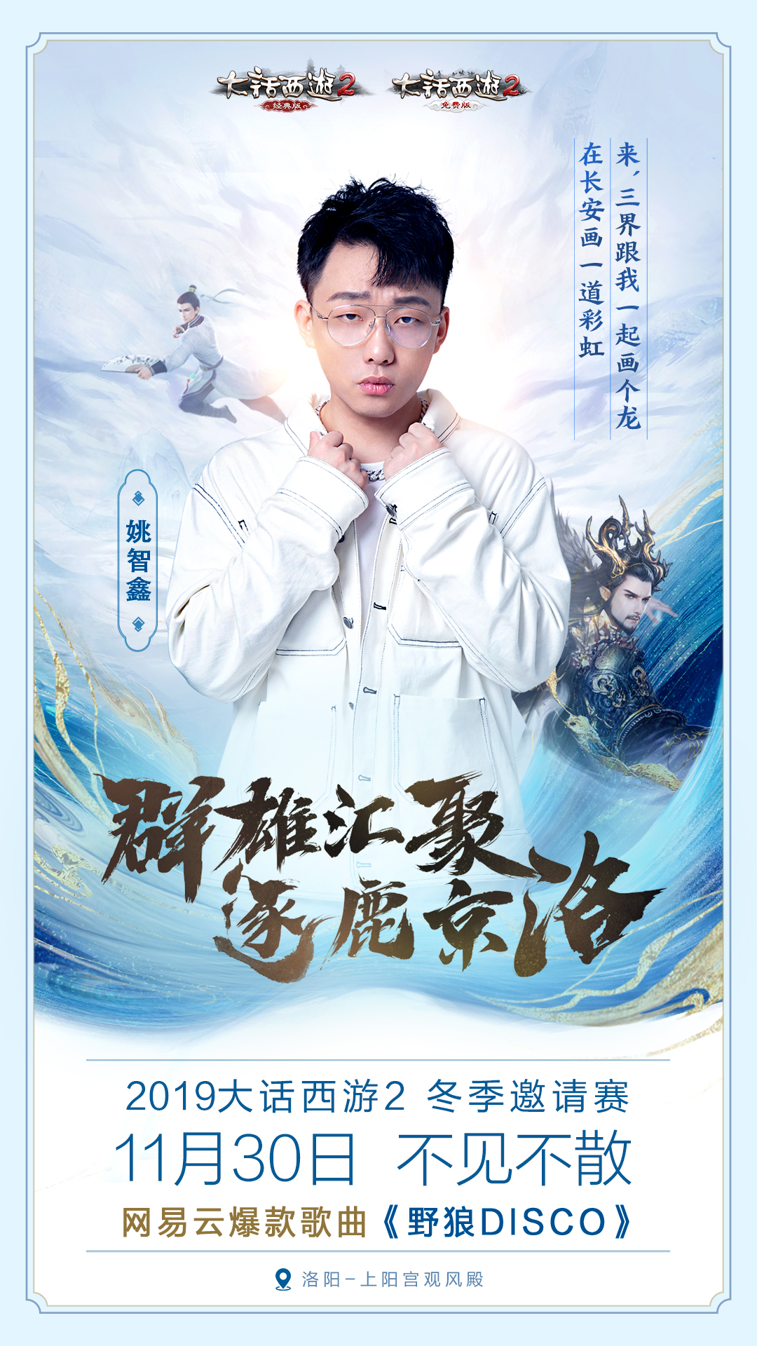 群雄汇聚,逐鹿京洛!大话2019冬季邀请赛将于11月30日-12月1日,在洛阳上阳宫文化园激燃打响。此次赛事,除了可以见证各路高手之间的“神仙打架”,还将有你意想不到的精彩节目轮番上演!根据最新爆料,网易云热门洗脑神曲《野狼disco》将空降冬季邀请赛现场! “来左边儿,跟我一起画个龙;在你右边儿,画一道彩虹……”看到这熟悉的歌词,你脑中是否响起了那首洗脑而魔性的旋律?《野狼disco》作为新一代神曲简直是刷遍了抖音和朋友圈。另类却又亲切的《野狼disco》,押着俗常的韵脚,又抖着意外的机灵。它混搭着港台金曲风,东北喊麦的市侩劲儿和复古迪斯科的强劲节奏,凭借一种真诚的“土”味,一曲火爆网络,引发现象级传唱。 12月1日,内地新生代创作型歌手姚智鑫,将惊喜空降冬季邀请赛现场,为大家带来不同感觉的抒情版《野狼disco》!热爱R&B与hip-hop的姚智鑫,中英文歌曲信手拈来,高低音域无障碍驾驭。在他的改编与倾情演绎之下,《野狼disco》少了一丝土味,多了几许柔情,届时将呈现出怎样的韵律和节奏,又将以什么方式嗨爆全场呢?让我们一起期待这场精彩演出吧! 11月30日-12月1日,锁定洛阳市上阳宫文化园,看《野狼disco》为冬季邀请赛再添一把火!此外,线上观看赛事直播还能赢年手办、限量版纪念点卡、大鸡驴公仔、等惊喜好礼! 编辑:叶子猪小秘书