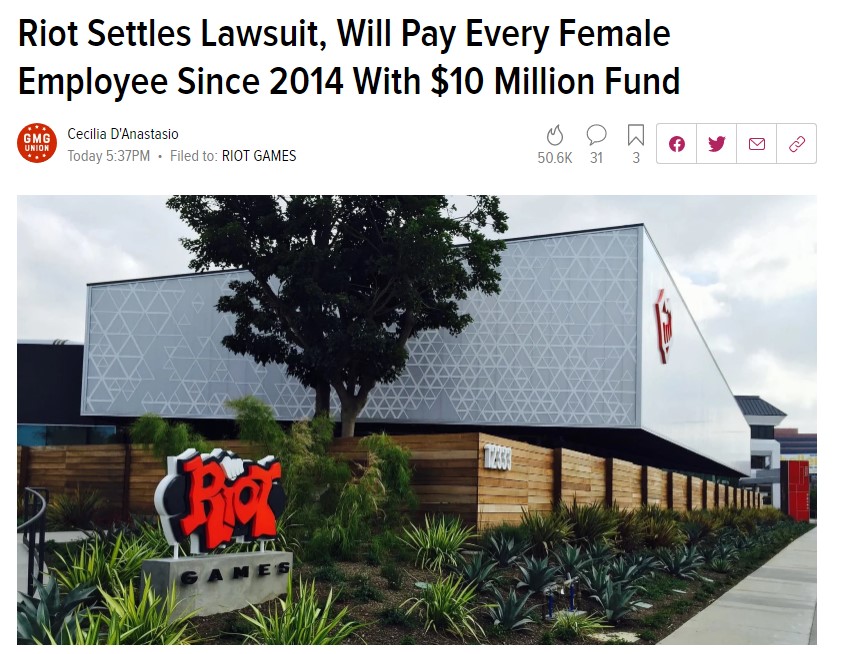 之前闹得沸沸扬扬的拳头性别歧视案终于有了结果,据《洛杉矶时报》报道,Riot Games将向过去五年内(自2014年起)受雇于该公司的女性员工集体支付1000万美元的巨额赔偿。原告的律师说,这是加州历史上最大的性别歧视诉讼案件之一。 外媒Kotaku获得的一份拟定版和解协议副本中指出,每位诉讼参与者将获得一定数额的资金,金额取决于“他们作为雇员的任期、时间和地位”。 这笔巨赔偿款出现的一个原因是为了弥补原告律师认定,公司男女工资之间的巨大差异。 去年,拳头采取了几项措施来缓解其性别歧视文化,包括彻底改革其招聘、招聘和晋升流程;提供更清晰的职位描述;解雇问题员工;引入第三方文化顾问和一名多元化主管;任命女性担任领导职位;以及为员工提供进一步反馈的渠道。 今年8月,有拳头在职员工告诉外媒Kotaku说,拳头在解决性别歧视问题方面取得了切实进展。 不幸的是,一些人表示,由于拳头还在继续任用诉讼中提到的高层男性员工,而这种切实的改变也因此受到了大量的非议,有消息称,就是这些男性高层在职场上做出了这些不利行为。 一位现任女员工说: “ 拳头决定赔偿女性在这里遭受的虐待,这很好,但她们关于‘治愈伤痛,继续前进'的言论让人有所期待。但当我们面对这样的现实,就是一天的工作结束时,拳头更多的是付钱给仍然在这里的女员工,让她们继续与被指控的施虐者工作,这让我们的伤口很难痊愈,继续工作。” 编辑:叶子猪小秘书