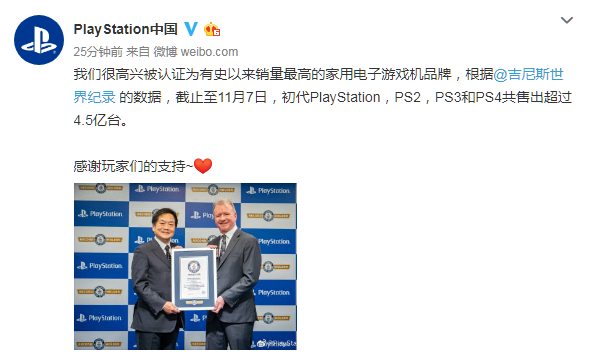 PlayStation获吉尼斯世界纪录 共售出超4.5亿台