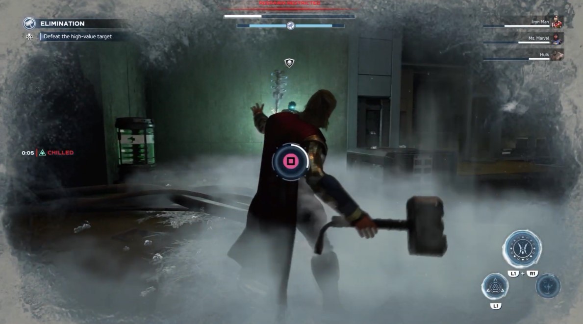 《漫威复仇者联盟》中每个超级英雄都有三种不同的技能:突击、支援以及终极。雷神所使用的终极技名叫“Bifrost”。该技能使用后,索尔会把北欧神话中“九大国度”的力量引致目标区域。玩家可以改变该技能的效果,比如攻击或辅助队友。