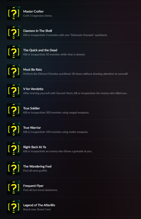 看来真要发售了 《赛博朋克2077》成就列表泄露