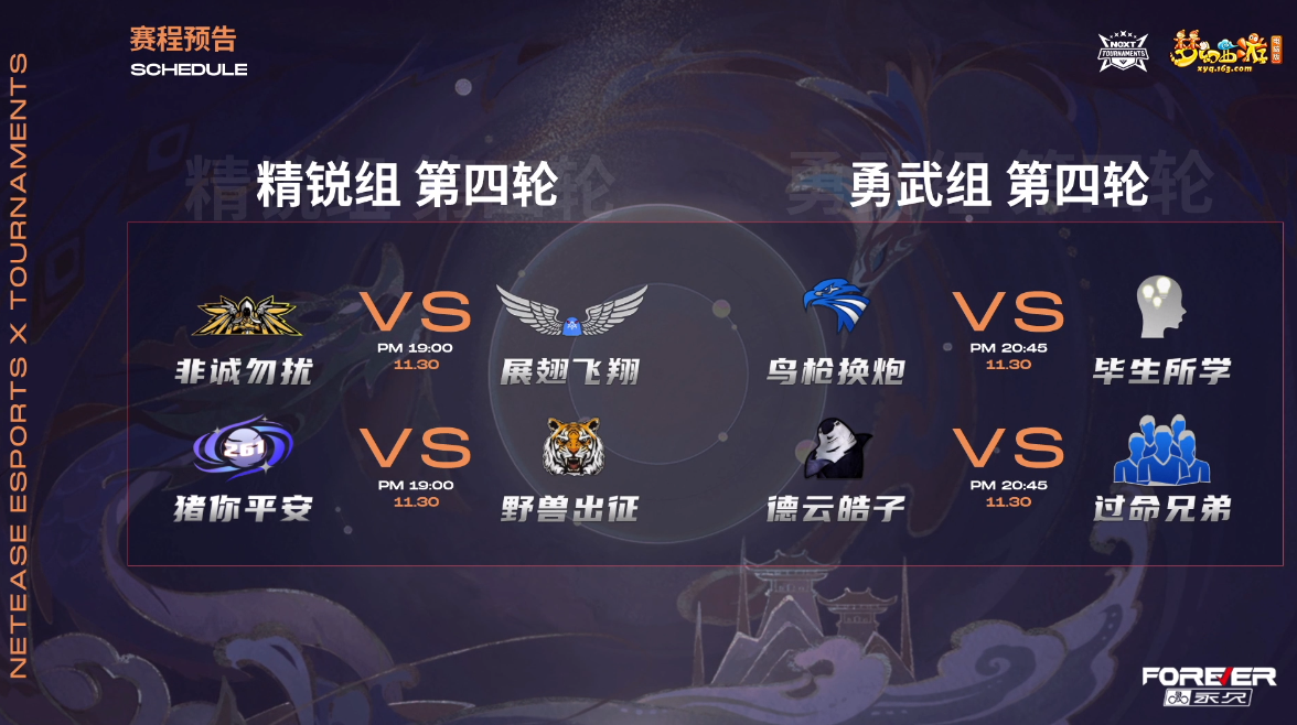 ¡¡¡¡ÍøÒ׵羺NeXT2021¶¬¼¾Èü¡¶ÃλÃÎ÷ÓΡ·µçÄÔ°æÈý½çÖ®ÐÇÑûÇëÈüÔÚ11ÔÂ30ÈÕÓÀ´¾«Èñ×éºÍÓÂÎä×éµÚËÄÂֵıÈÈü£¬¾¹ýÒ»Öܵĵ÷Õû£¬¸÷Ö§Õ½¶ÓÔٴγöÕ÷Õ½¿öÈçºÎ£¿Ò»ÆðÀ´¿´¿´°É¡£