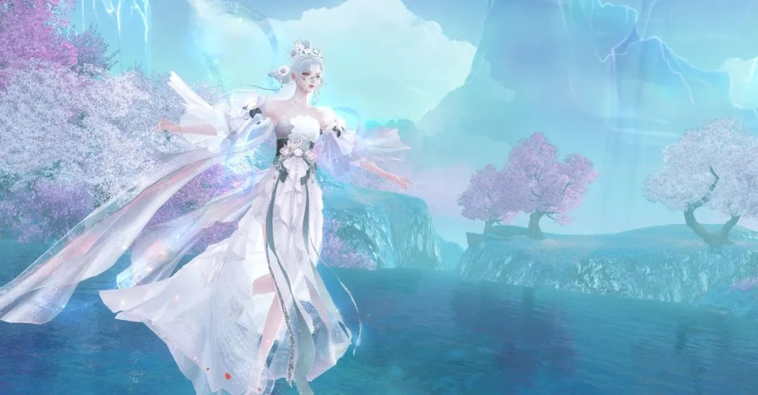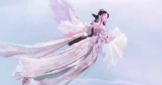 若是身负【云垂幽羽·紫】翱翔天际,则更似脱胎花蕊之精灵。【星月明河】上一对杏眸流转清光活泼俏丽,袅袅娉娉。