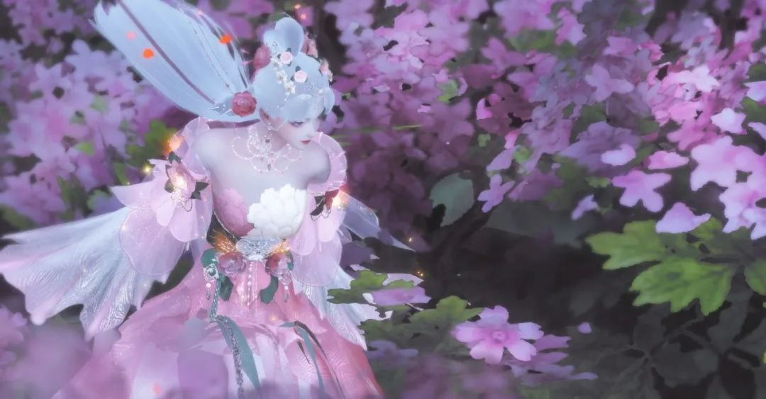 此等姝丽面容却被她覆上【珠帘翠羽】加以掩饰,半明半昧之间,只隐约窥得动人神色。【粉霞红绶】上薮春吐蕊,绦带翩翩恍若赤烟四起,少女举起灼灼盛放的【云锦红英】,正似手握花神权柄,自此睥睨一方。