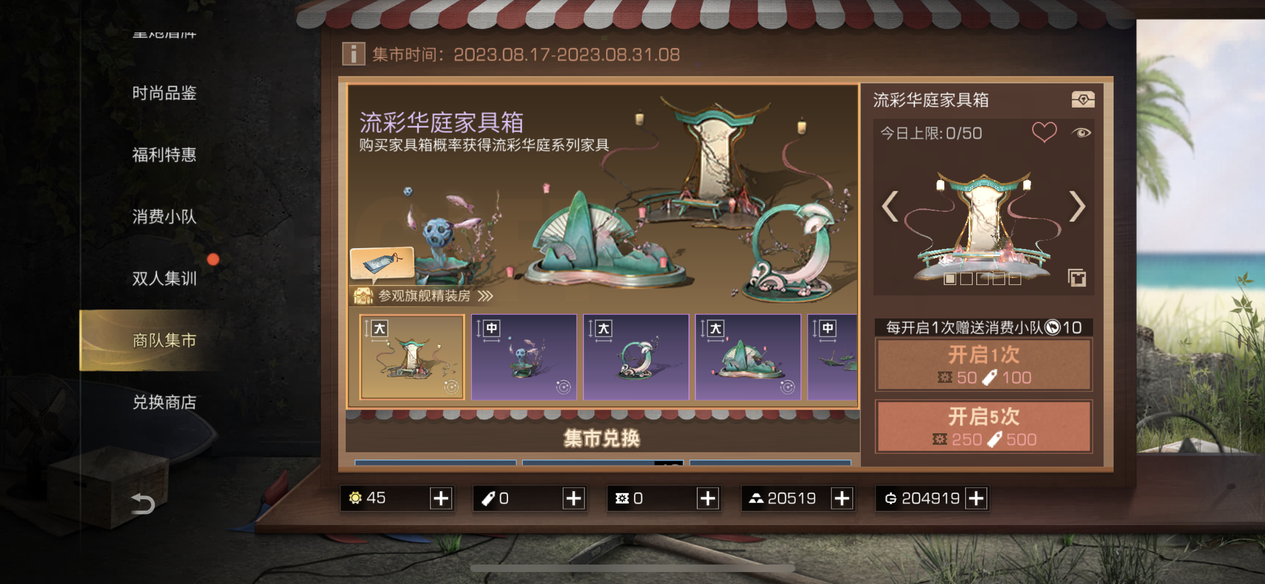 漾漾清波,流彩掩翠,废土世界里也能打造幽静雅致的鹊桥相会之地。8月17日至8月31日8点,流彩华庭家具箱上线商队集市,更有可弹奏起舞的悠悠钟琴,助你表达心头难言之情。