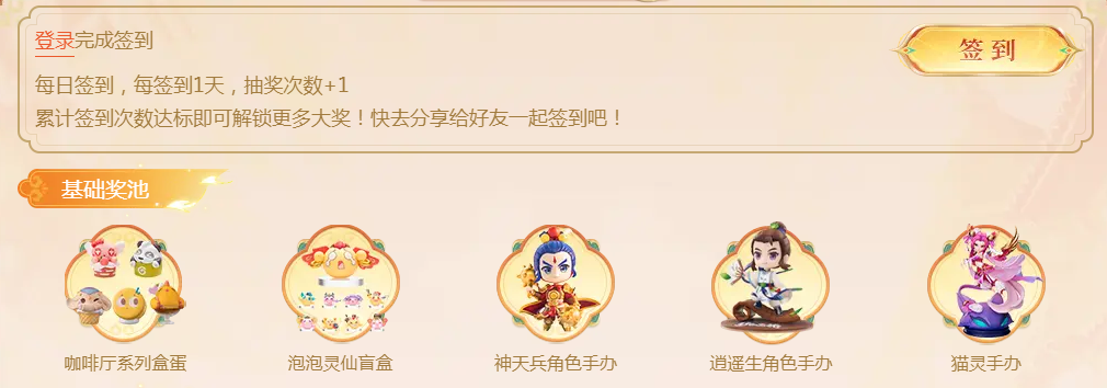 ¡¡¡¡ÔÚ2023Äê12ÔÂ4ÈÕµ½2024Äê1ÔÂ14ÈÕÆÚ¼ä£¬ÉÙÏÀÃǾͿÉÒÔÿÈÕǰÀ´»î¶¯½çÃæÇ©µ½Ò»´Î£¬¶øÃ¿ÈÕÇ©µ½´ÎÊý½«ÓÚÿÈÕµÄ0£º00׼ʱˢУ¬Ö»ÒªÇ©µ½Ò»´Î¾ÍÄÜ»ñµÃÒ»´ÎºÃÀñ³é½±»ú»á¡£ÕâÒ»´Î³é½±¿ÉνÊǺÃÀñ¶à¶à£¬²»½ö½±Æ·ÖÖÀà¶àÑù½±Æ·µÄÊýÁ¿Ò²·Ç³£¶à£¡¹âÔÚ»ù´¡µÄ³é½±½±³ØÖоÍÓаüº¬5ÖÖ¹Ù·½ÈÏÖ¤µÄÖܱߺÃÀñ£º¿§·ÈÌüϵÁке°200¸ö¡¢ÅÝÅÝÁéÏÉäºÐ200¸ö¡¢ÉñÌì±ø½ÇÉ«ÊÖ°ì20¸ö¡¢åÐÒ£Éú½ÇÉ«ÊÖ°ì20¸öÒÔ¼°ÁéèÊÖ°ì20¸ö¡£