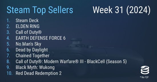 不知道本期的Steam周销榜中,是否有大家支持的游戏呢?