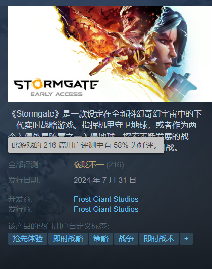 而在昨日,Steam就上线了一款RTS新作《风暴之门》。这款游戏由冰霜巨人工作室开发,此前已经经过了多次测试。其采用虚幻引擎5打造,沿袭了《星际争霸2》的RTS玩法。除了常规的对战模式,还包含3vE合作游戏模式。