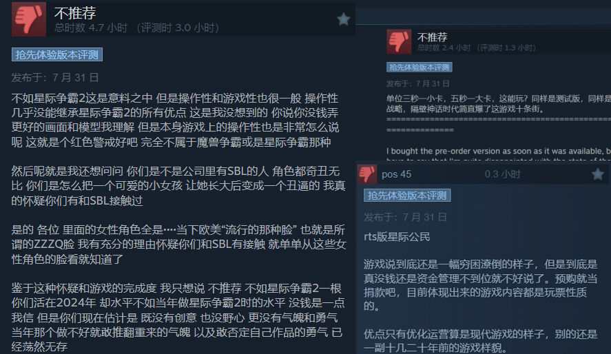 然而这款野心很大的游戏,在发布首日却遭遇了口碑滑铁卢。当前在Steam上的好评率仅为58%未到及格线。玩家们反馈的问题,主要集中在操作性、游戏建模、内容优化等几个方面,同时游戏的售价,也是争议比较大的点。