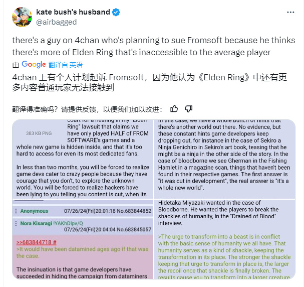这位对FS社提起诉讼的玩家认为,《艾尔登法环》中有太多游戏内容没有公之于众,但这其实就是游戏的一部分。此外,《只狼》中狼的另一面、《血源诅咒》中有关渔村的故事,也都被当初隐藏剧情举例说明。