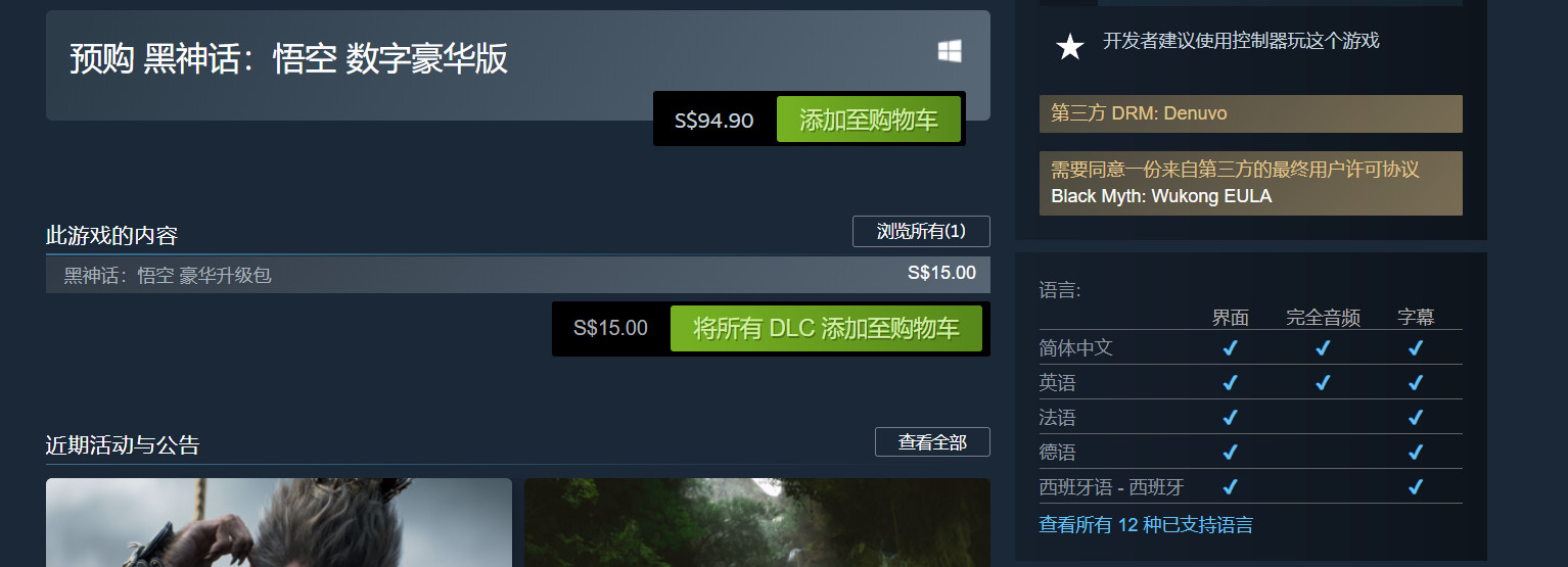 根据《黑神话:悟空》Steam页面,PC版游戏采用了D加密技术。