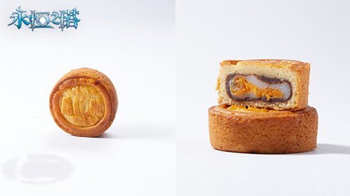 这款“AION”定制蛋月烧,外皮金黄酥脆,如同亚特雷亚大陆上金色阳光的照耀,闪耀着希望与梦想的光芒,轻轻咬下,内馅的细腻的豆沙与咸香的蛋黄完美融合,带来层次分明的味觉享受,让人回味无穷。