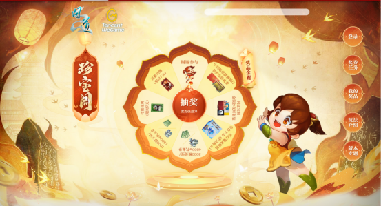 9月12日版本更新后,全区组玩家均可参加妖灵觉醒版本福利活动,活动为期一个月,完成特定任务可以获得奖券,消耗奖券可以参与抽奖活动,有机会获得中国储蓄银行金钞礼盒、问道定制金银钞夜灯套装、五行聚灵随机角色手办等实体奖励,也有机会获得大量银元宝和限时7天的竹熊/灵蛇铭牌等虚拟奖励。