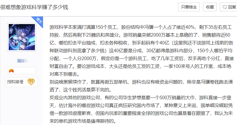 难怪有网友分析:“假定你是一个游科员工,吃了几年工资后,反手再吃个分红,直接财富自由了。”当然,对于游戏科学的员工来说,开发过《黑神话:悟空》这一条职业履历,或许才是更为可贵的东西。