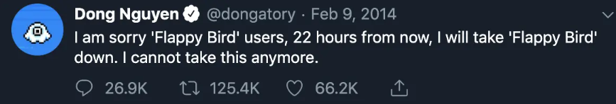 可令人意外的是,开发这款游戏的越南工程师阮哈东,在游戏最火的时候选择了下架。要知道,当时凭借这款游戏他光是靠广告都能日入5万美金。具体原因不得而知,但似乎是因为身处互联网的大环境中,游戏的爆火让阮哈东的私人生活大受影响,为此他才下架了游戏。