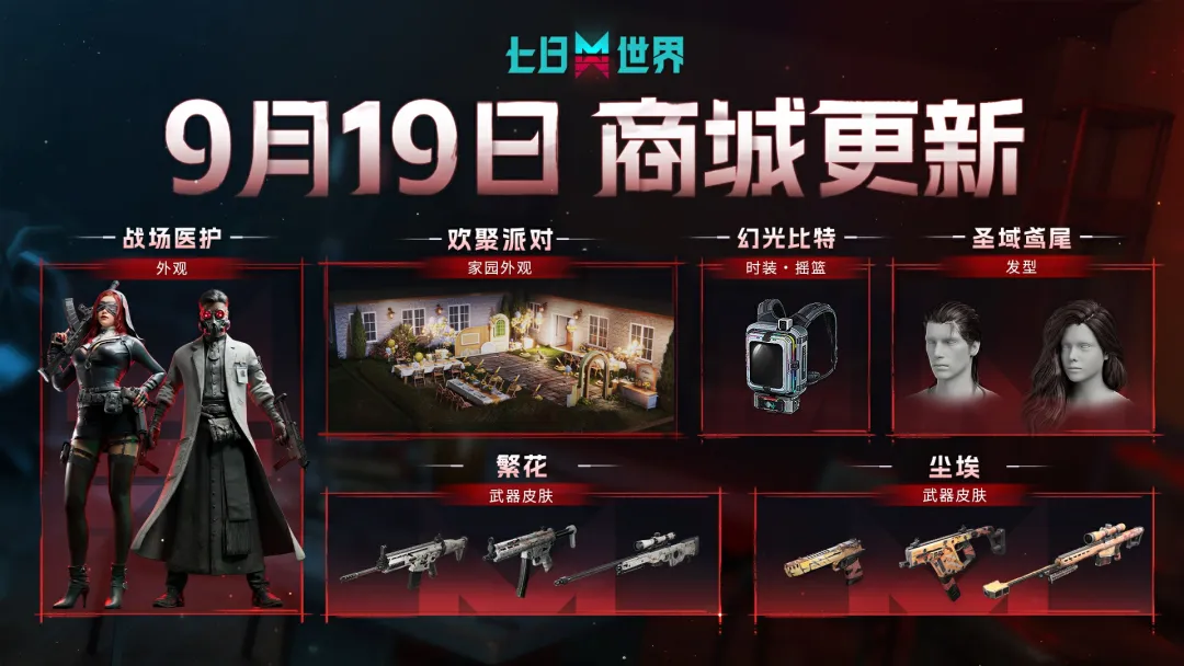 超自然开放世界游戏《七日世界》即将迎来更新——全新的卓越级时装外观-战地医护,以及全新的枪械皮肤、背包外观和卓越级家具包等内容,主要更新内容如下:
