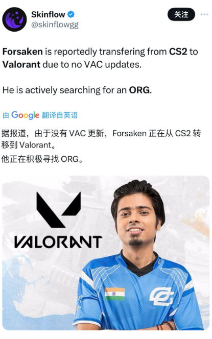 对于这个被发现两次比赛开挂的选手,仅被禁赛5年(明面上)的处罚,很多人都无法理解。为此,官方也都未作太多解释。而国外玩家们对forsaken解除禁赛也相当上心,甚至P图调侃他准备加入《无畏契约》战队。(笑点解析:当时VAC没检测出forsaken开挂,是B5发现的问题)