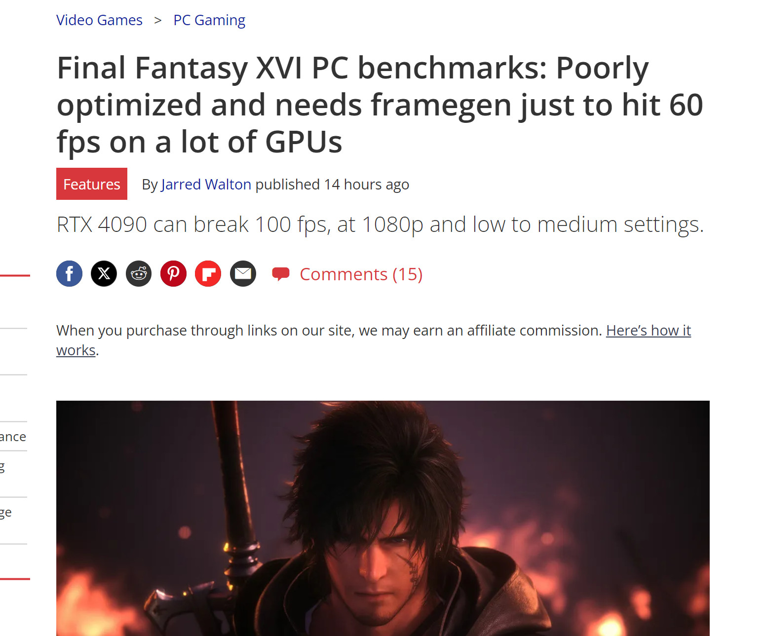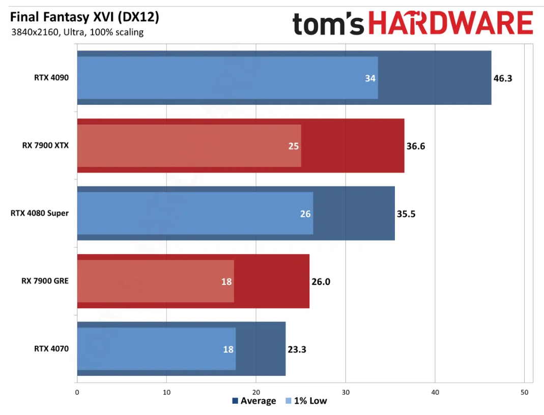 《最终幻想16》PC版基准测试:优化很烂,大量GPU需要帧生成才能达到60fps